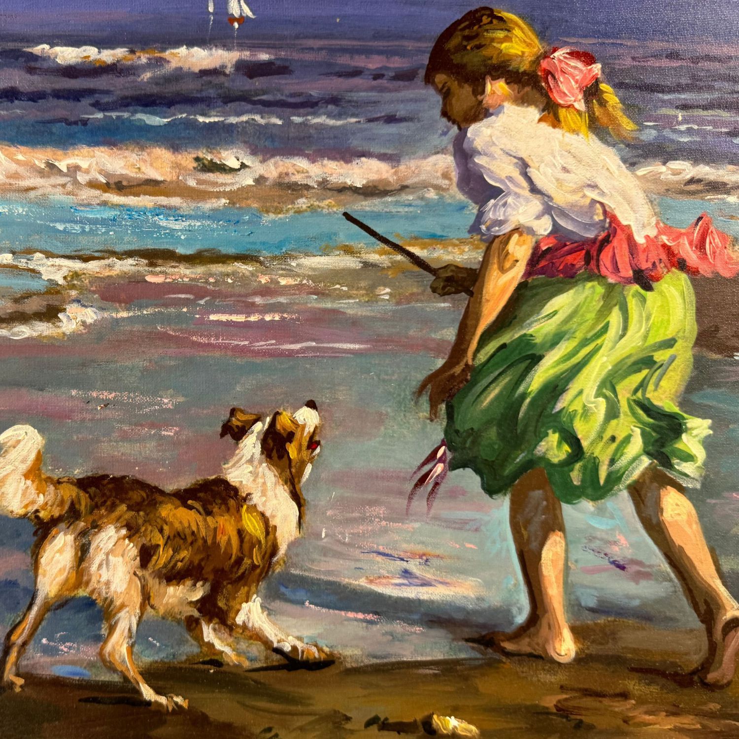 Dipinto olio su pannello, periodo XX secolo scuola Italiana, raffigurante Giochi di bambini su mare. Dimensioni: 35x50 cm. Reca firma in basso a destra di difficile lettura. Opera in buone condizioni.