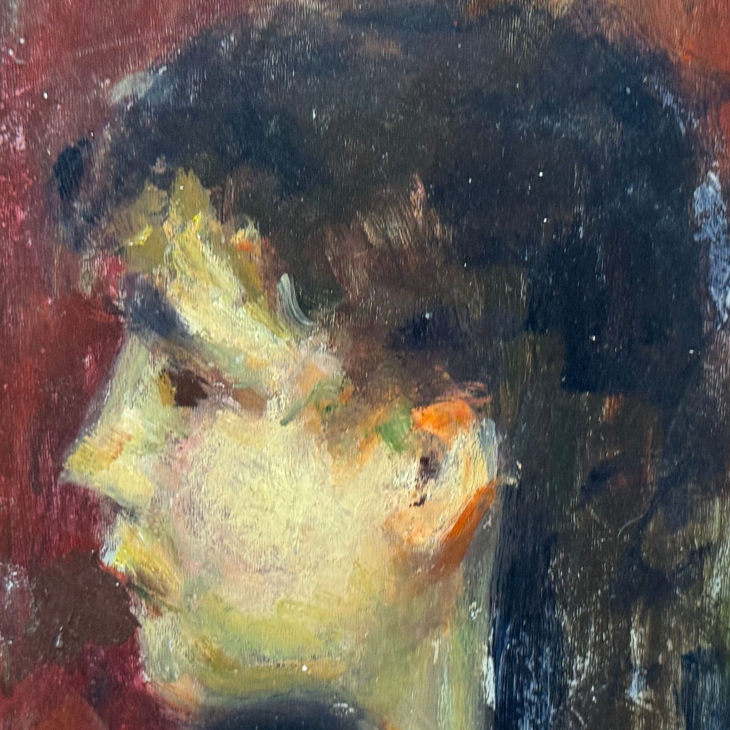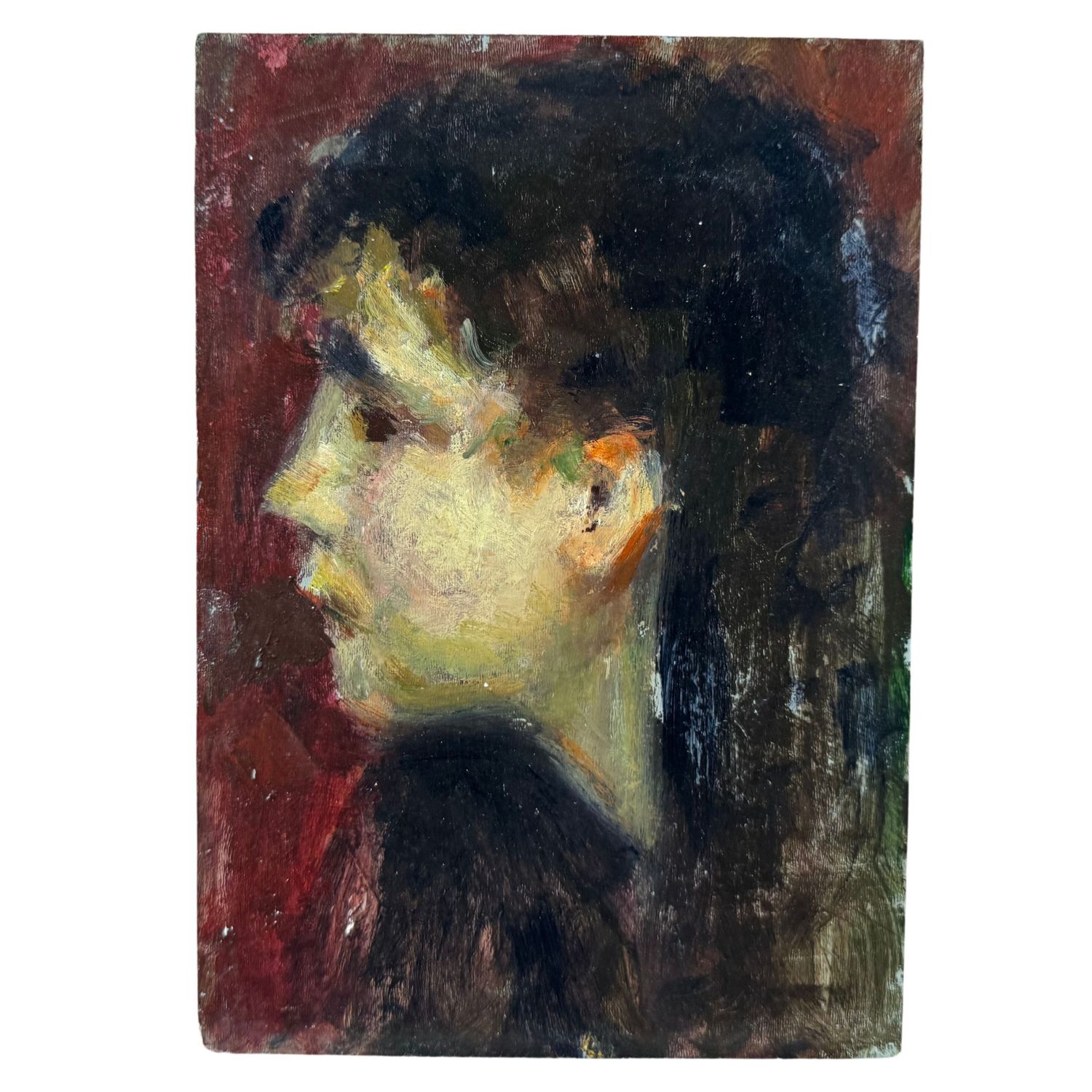 Dipinto olio su pannello, periodo XX secolo scuola italiana, raffigurante Profilo di giovane donna. Dimensioni: 17x24 cm. Da artista anonimo. Opera in buone condizioni.