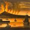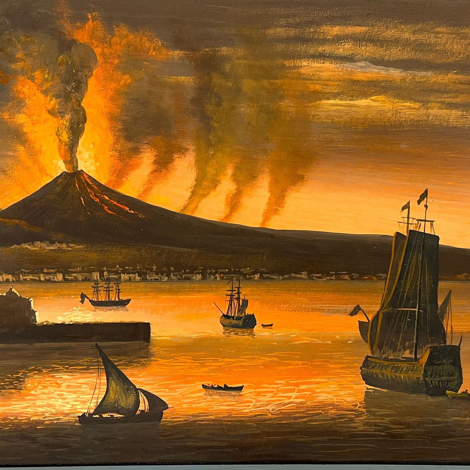 Dipinto guazzo (tempera su carta), periodo XX secolo raffigurante Eruzione del Vesuvio in scena notturna.