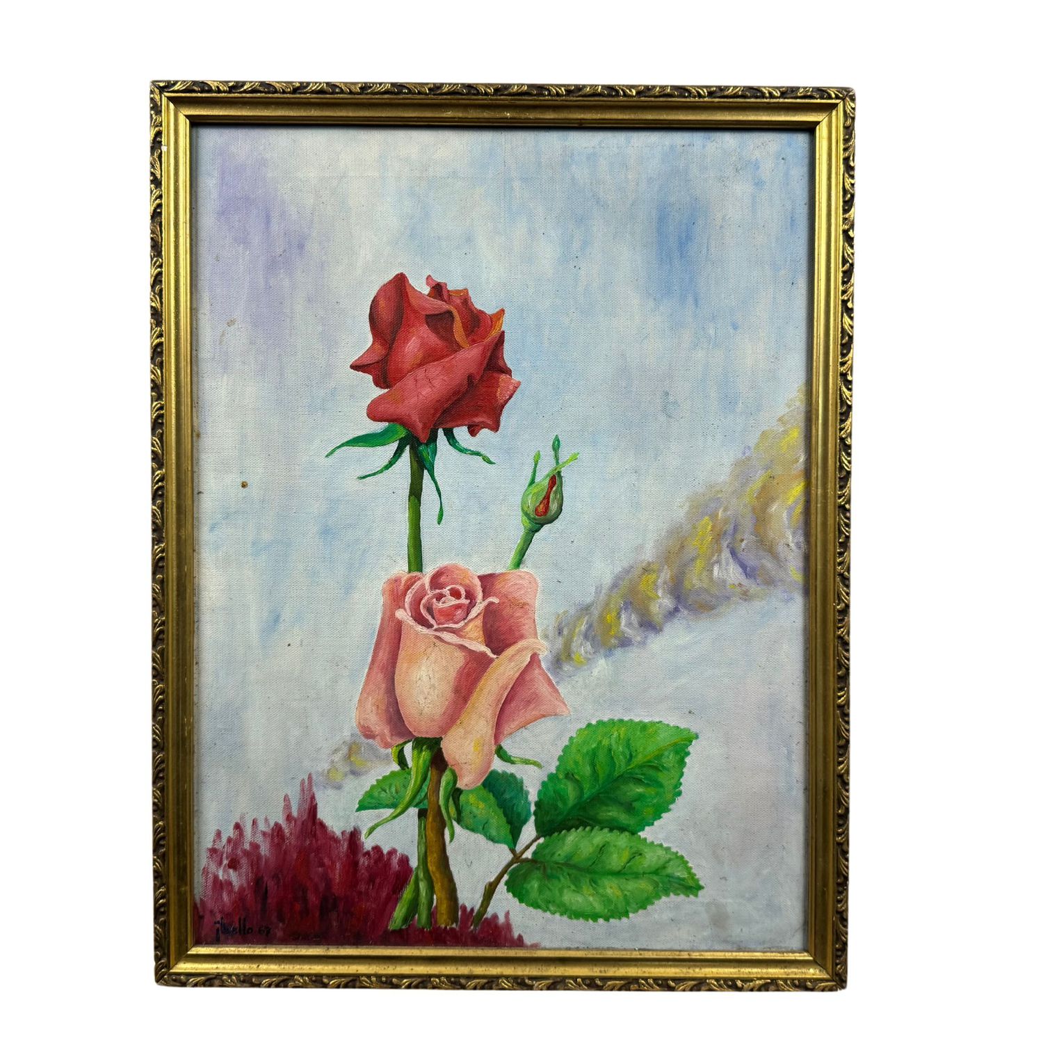 Dipinto olio su tela, periodo XX secolo scuola Italiana, raffigurante Una Rosa.