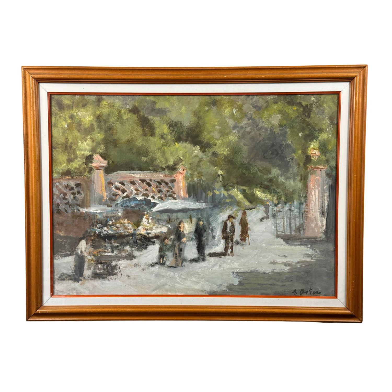Dipinto olio su tela, periodo XX secolo scuola Italiana, raffigurante Passeggiata nella villa Floridiana a Napoli.