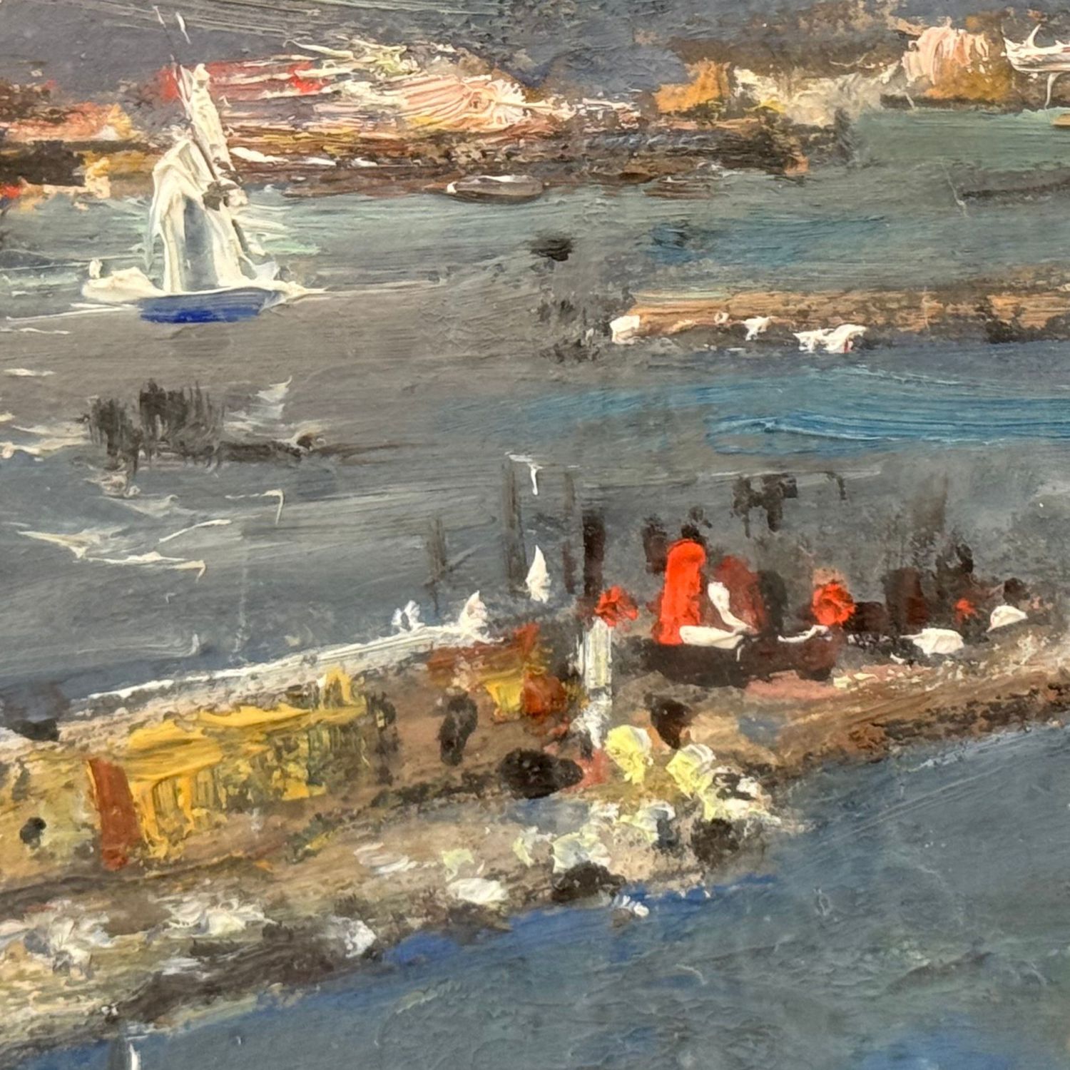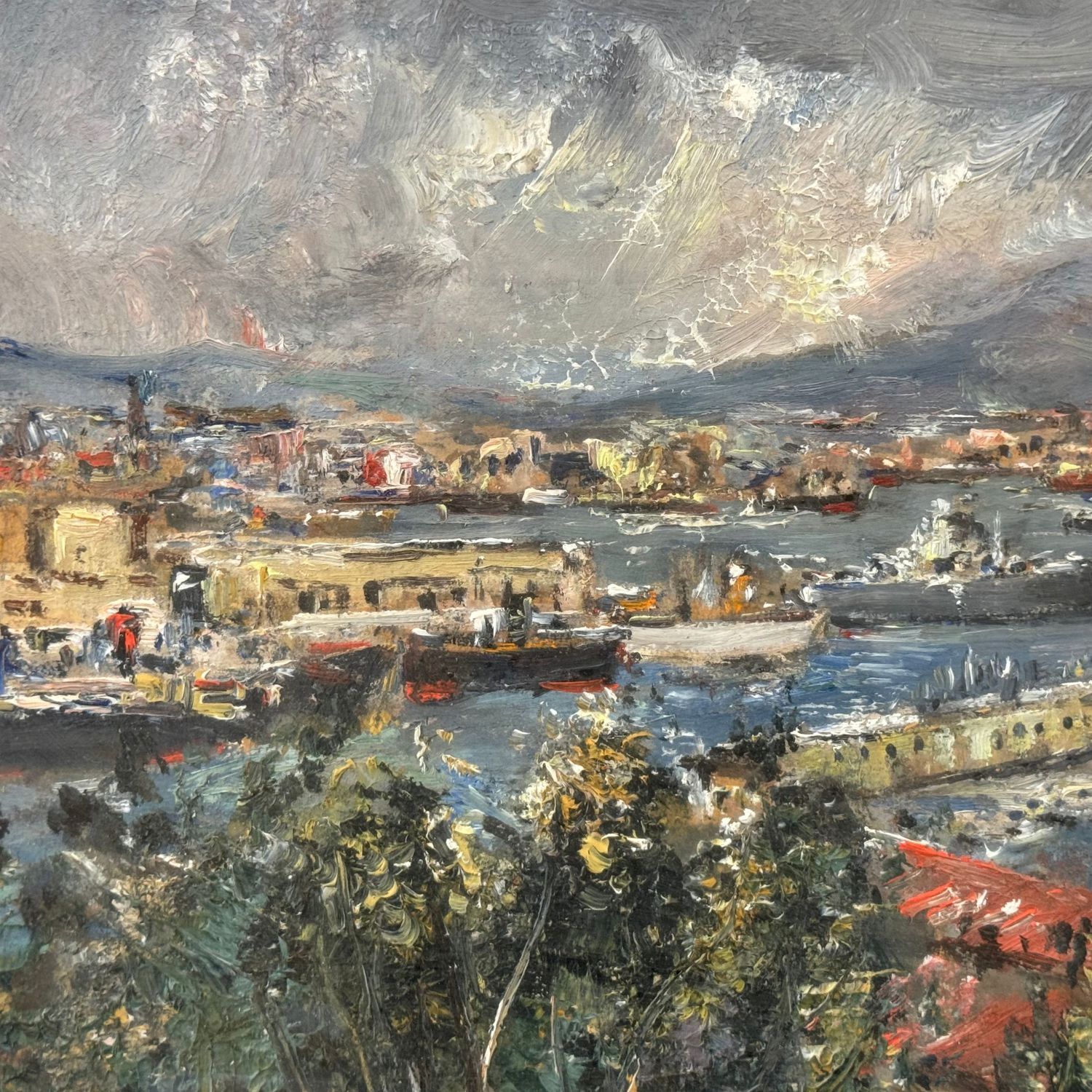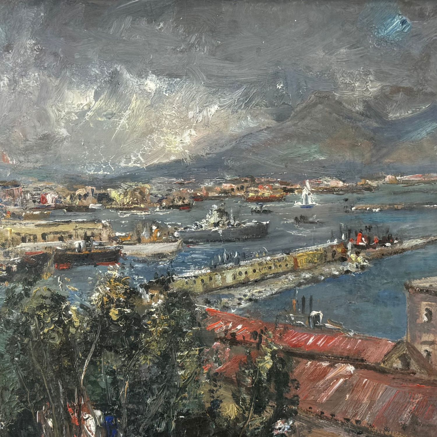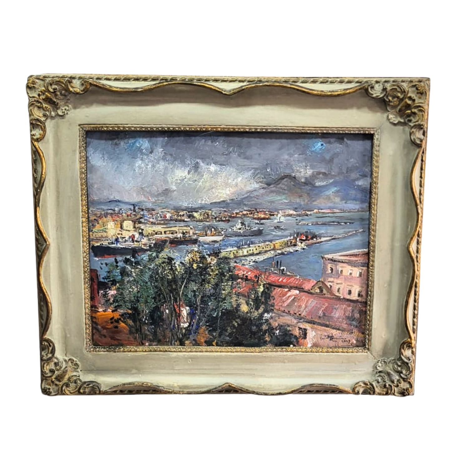 Dipinto olio su cartoncino, periodo XX secolo scuola Italiana, raffigurante Marina napoletana