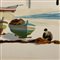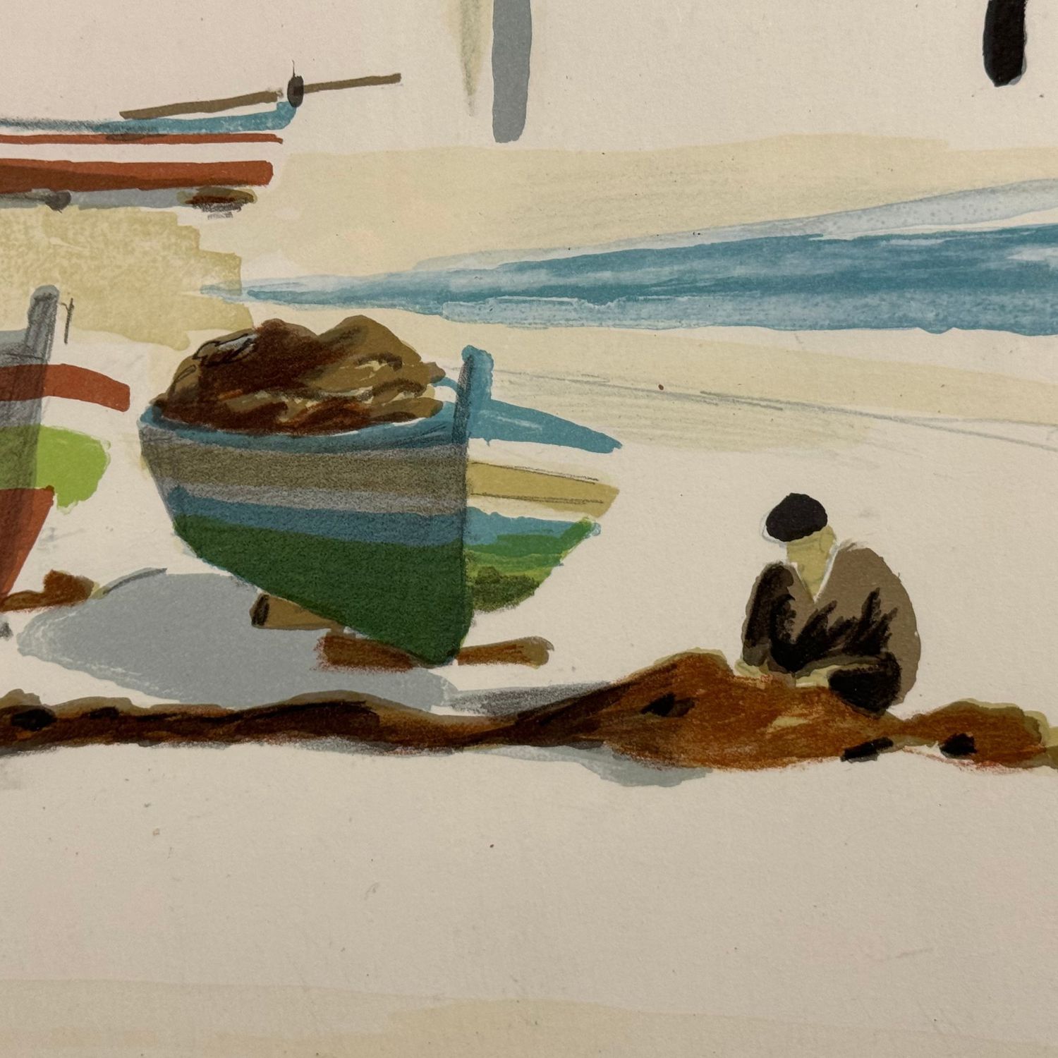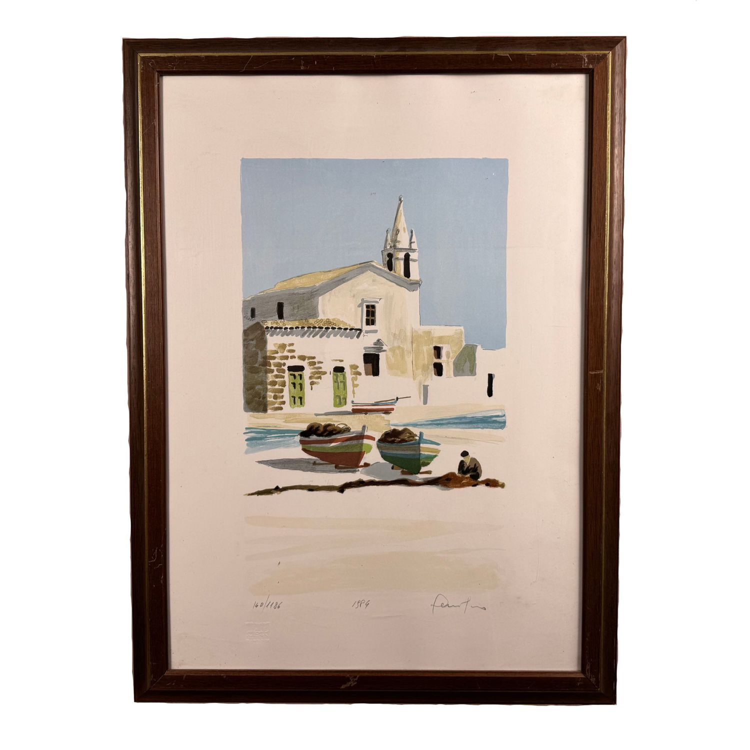 Tecnica mista su carta, periodo XX (1984) scuola Italiana, raffigurante Barche a secco.