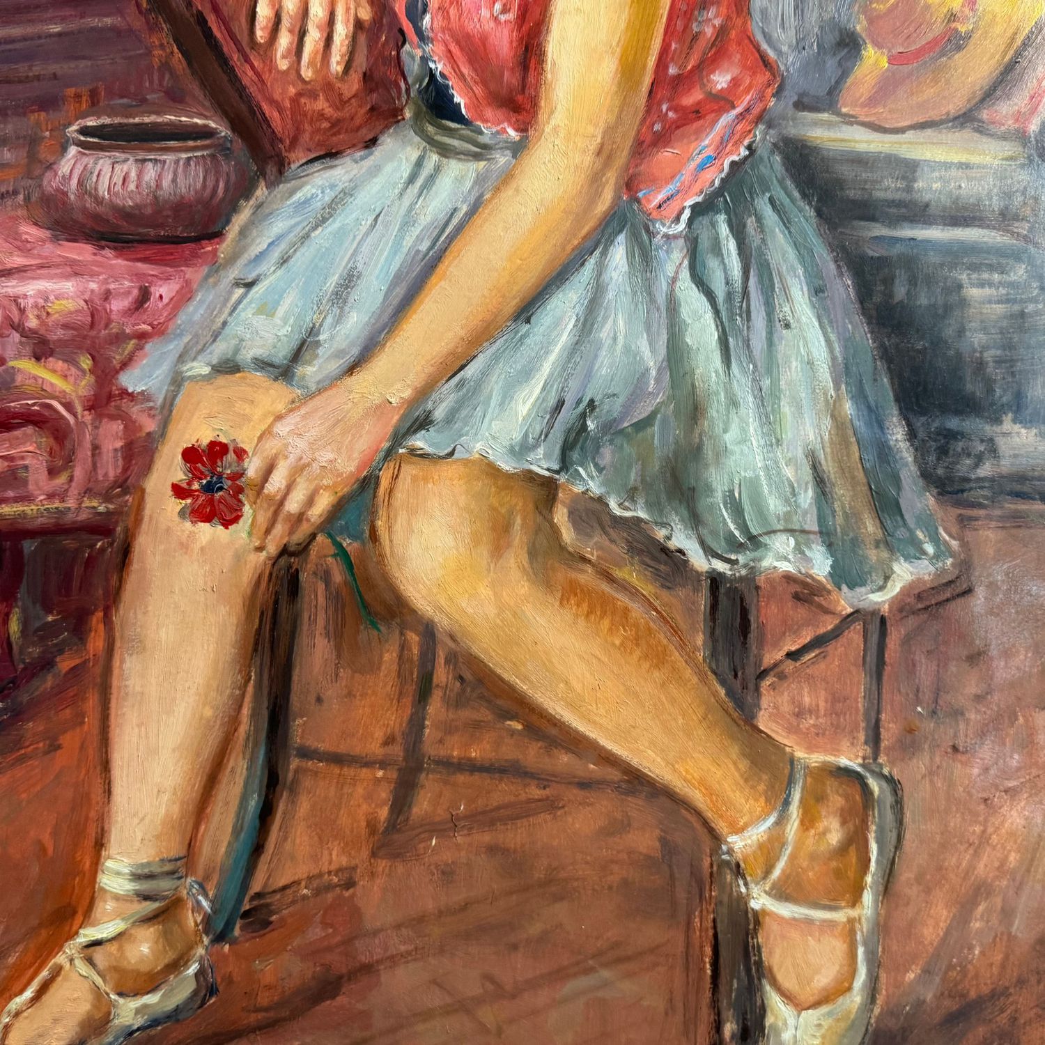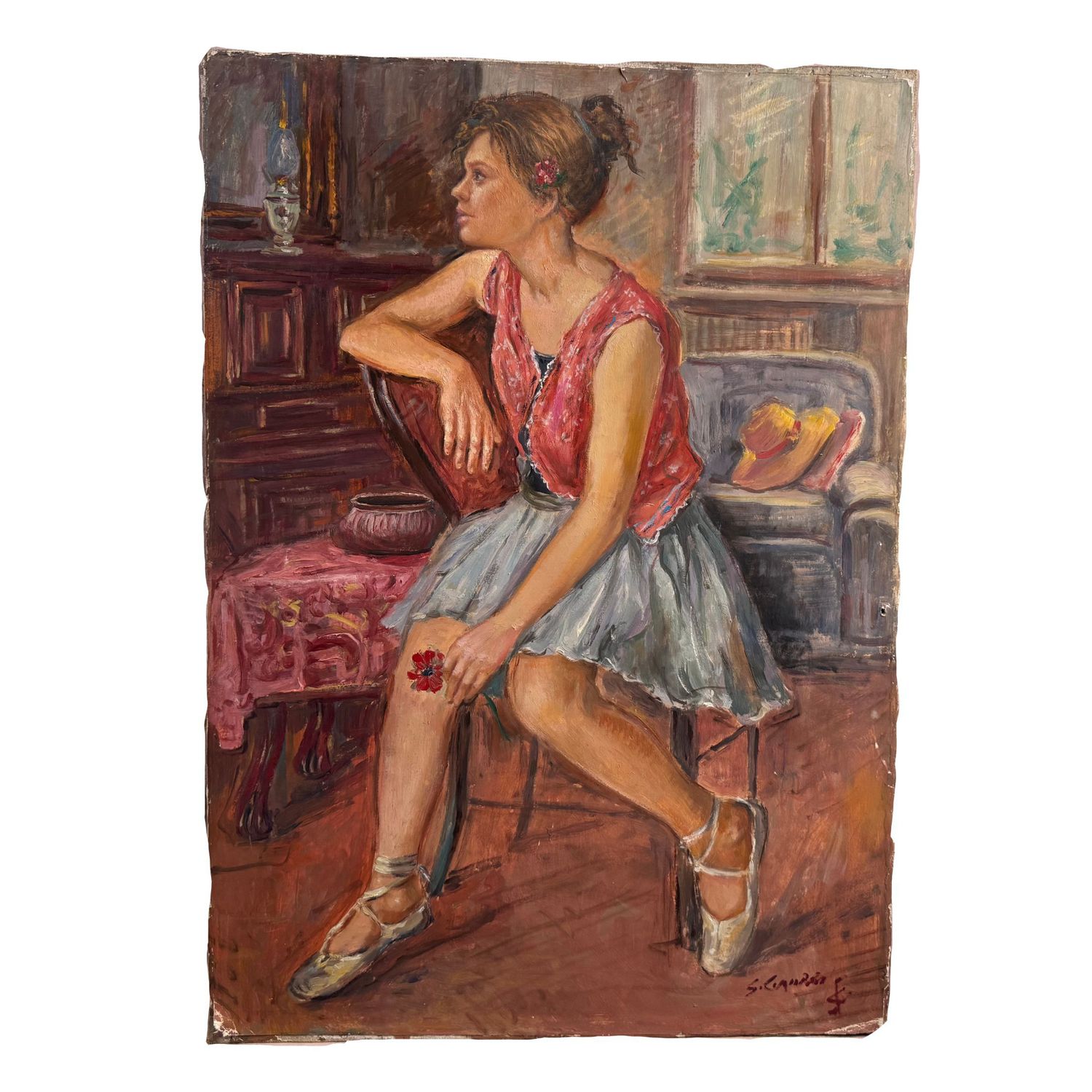 Dipinto olio su carta applicata su tela, periodo XX secolo scuola Italiana, tratta da un'opera di Antonio Bresciani, raffigurante Ritratto di ballerina.