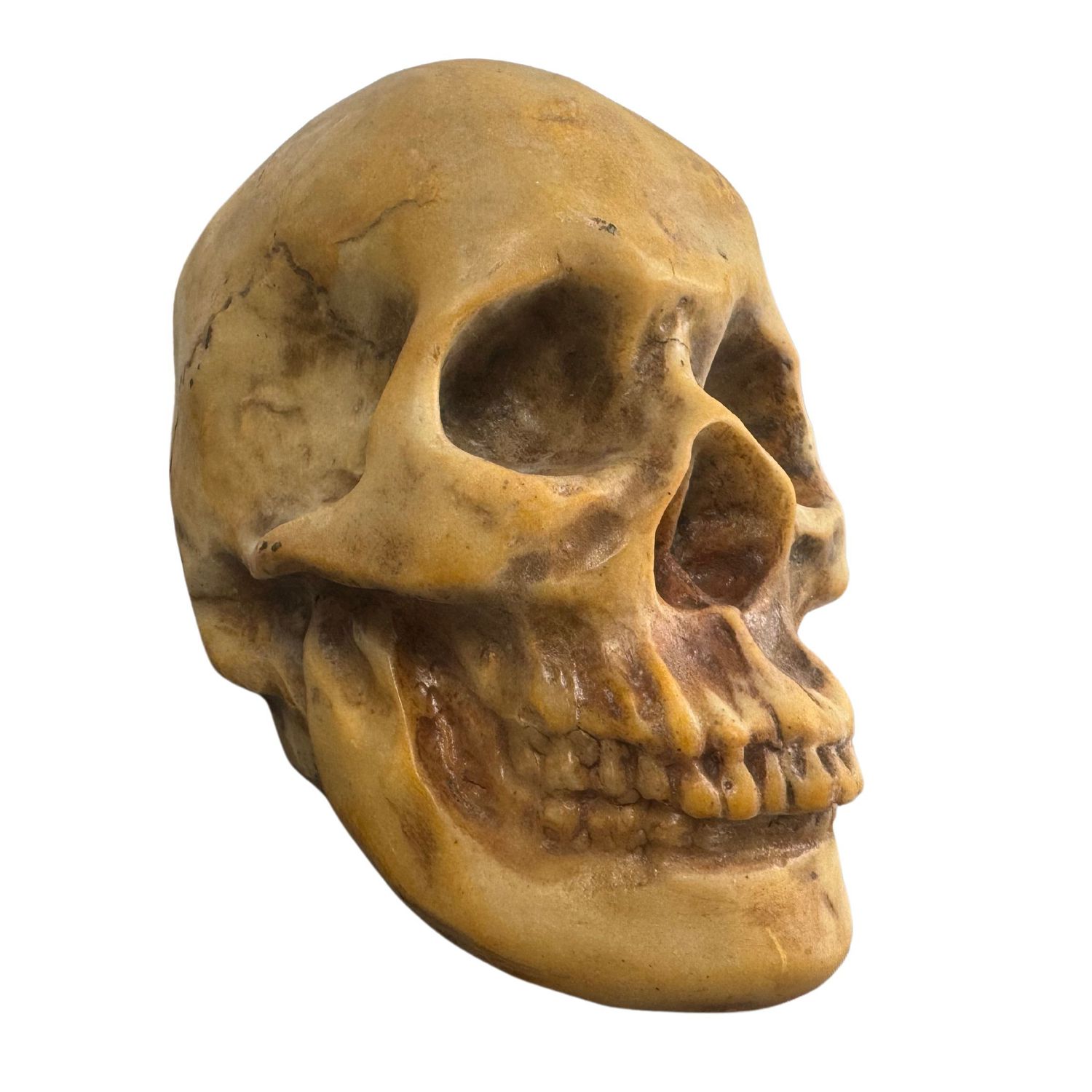 Scultura raffigurante teschio in pietra scolpita, periodo XX secolo.