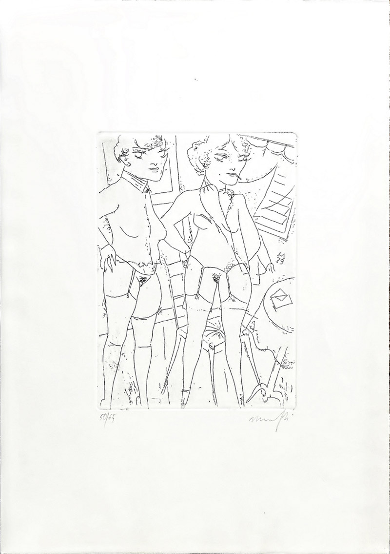 ALBERTO MANFREDI (1930-2001) Veduta d'interno con nudi - Interior View with Female Nudes puntasecca - drypoint, es 50/65, firmata, siglata e datata in lastra 79 cm 24,5x17,5
