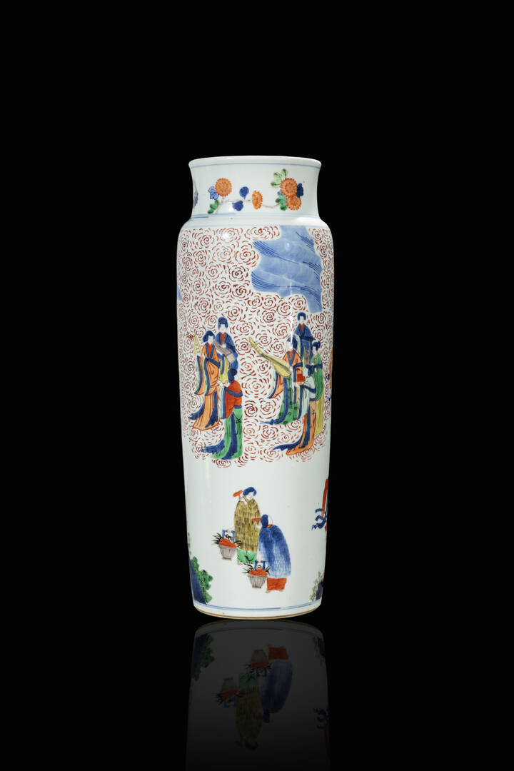 Lot 84 | VASO<BR>Vaso a cilindro in porcellana Wucai
