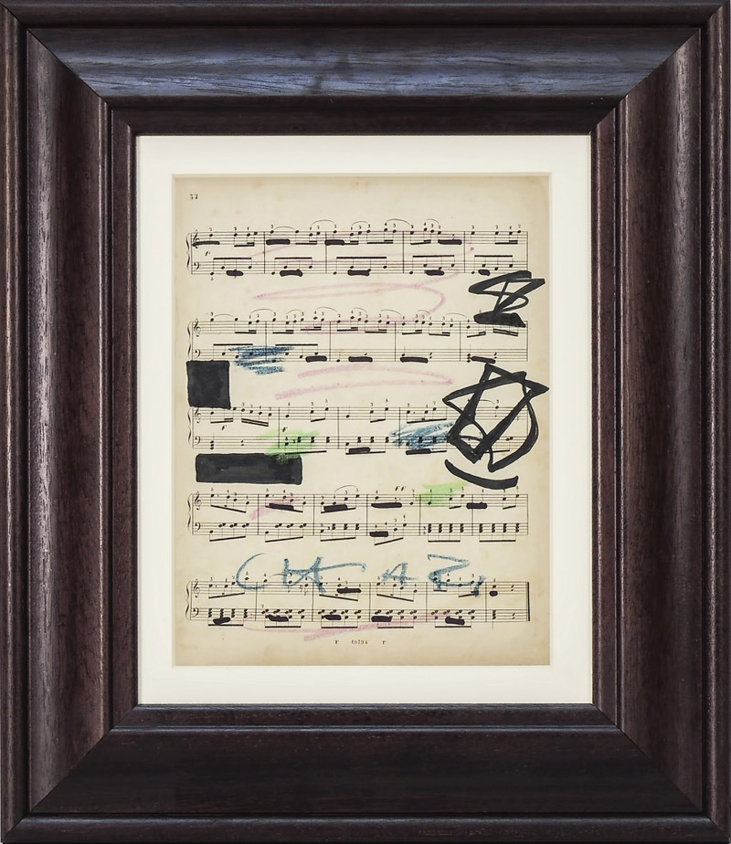 GIUSEPPE CHIARI (1927-2007) Composizione con spartito musicale - Composition with Sheet Music tecnica mista - mixed media, firmato, in cornice cm 31x23,5 Corredato di autentica dell'autore su fotografia - With Author's authentication on photo