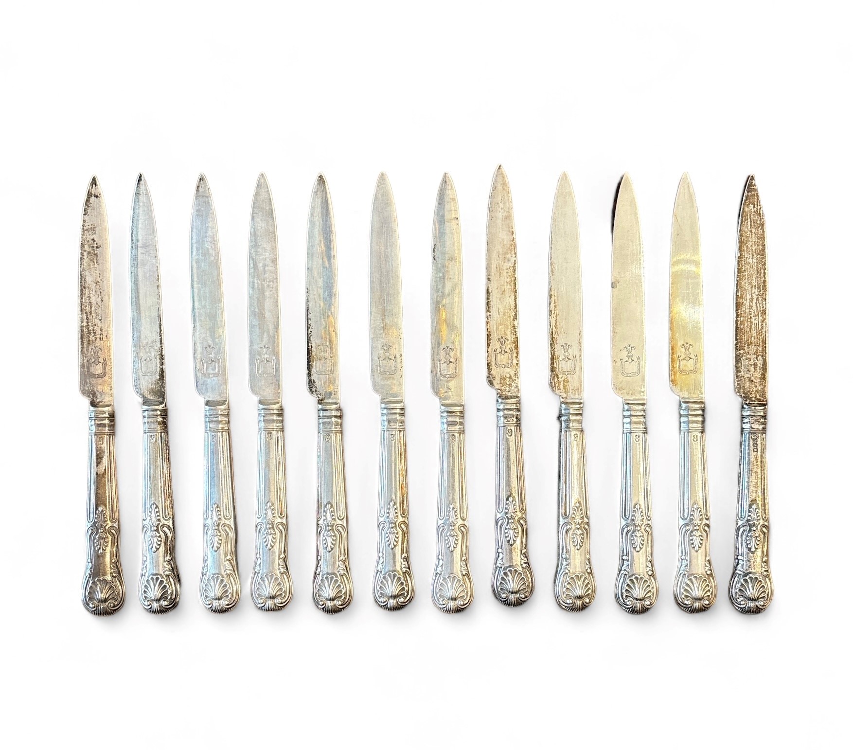 12 coltelli in argento Maifattura inglese, seconda metà XIX secolo