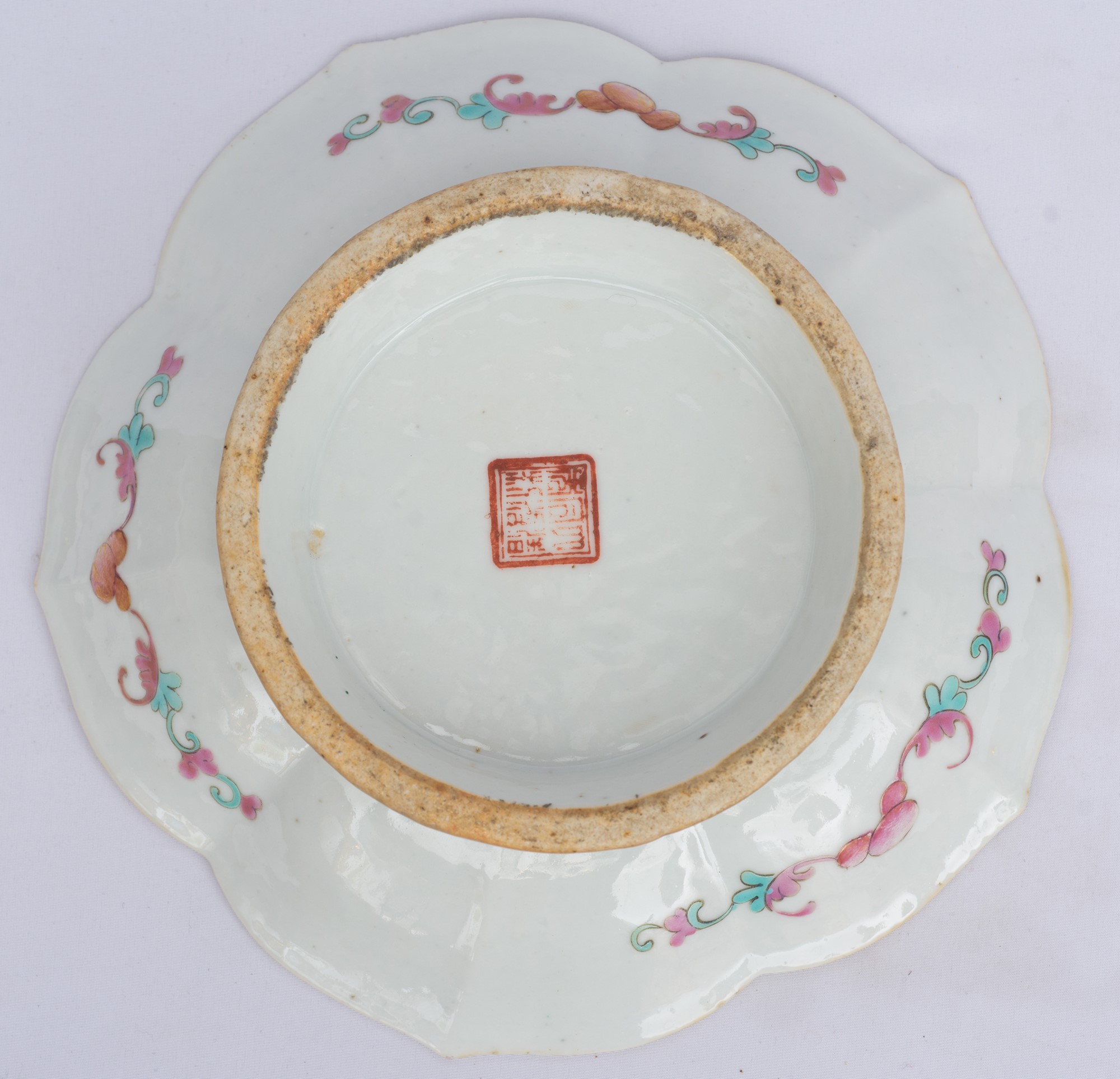 Alzatina Cina, tarda dinastia Qing 6 x 21 cm In porcellana policroma decorata...
