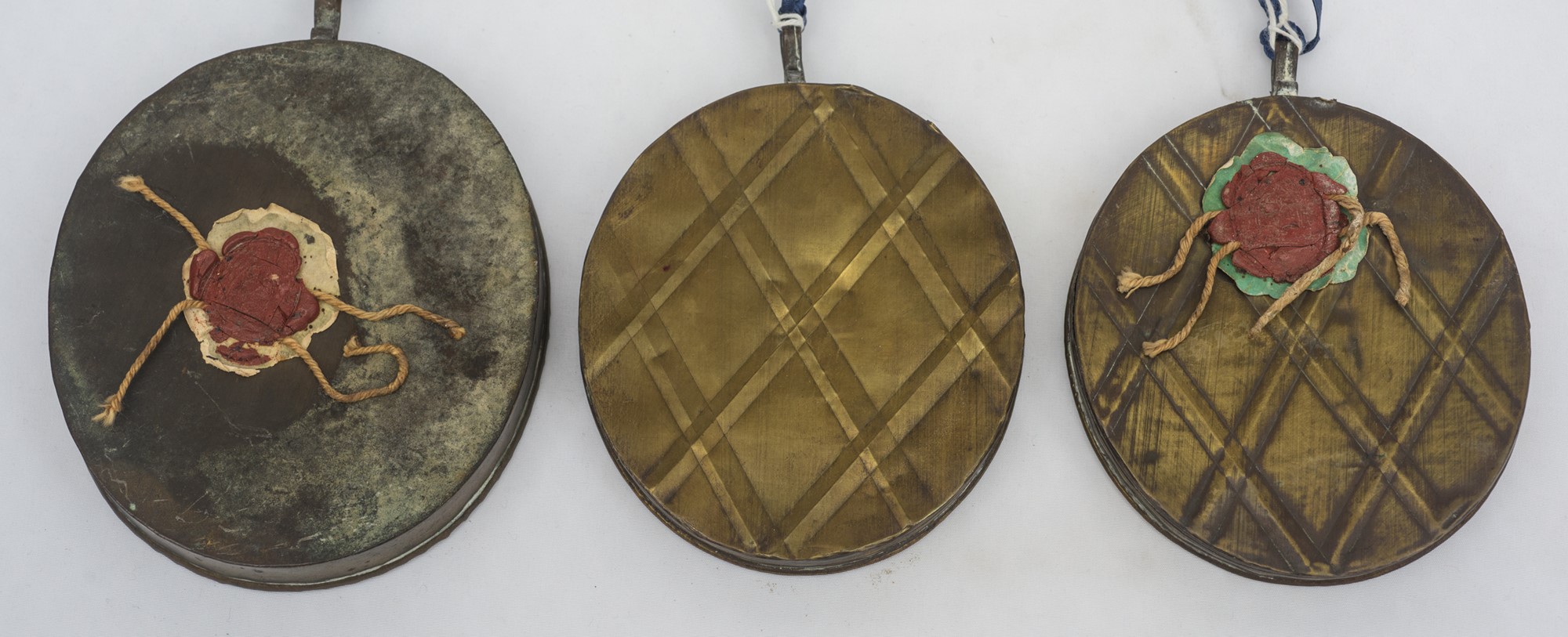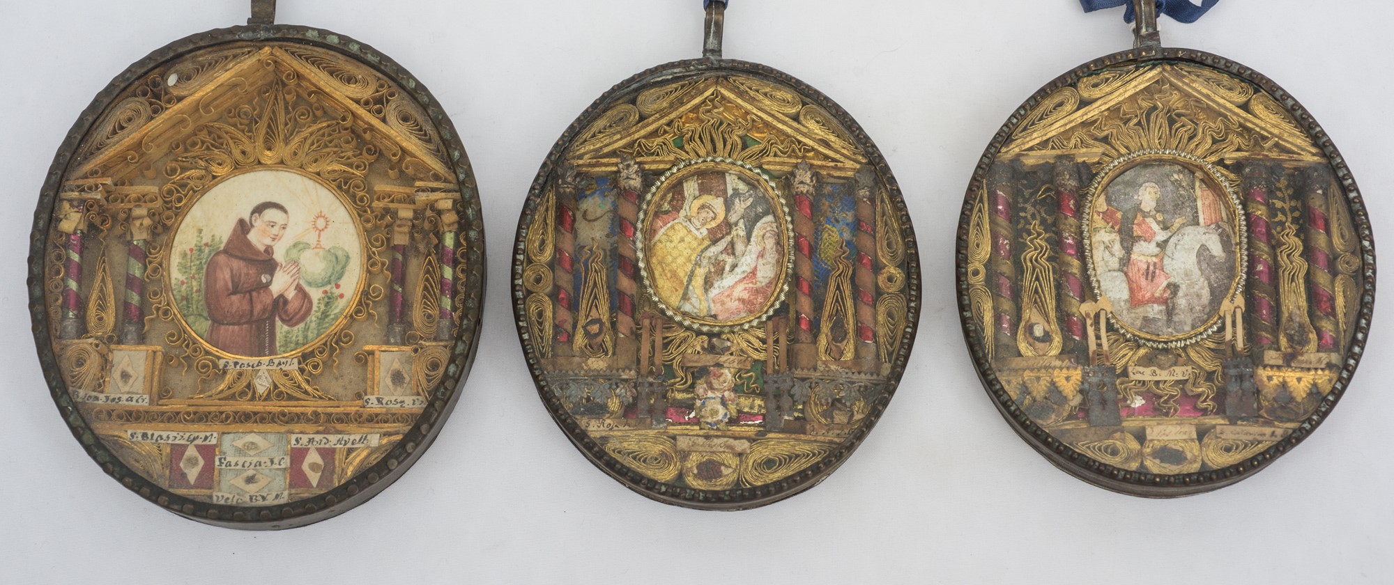 Tre ex voto Inizio XX secolo 11 x 10 cm; 10 x 9cm; 10 x 9cm In filigrana....