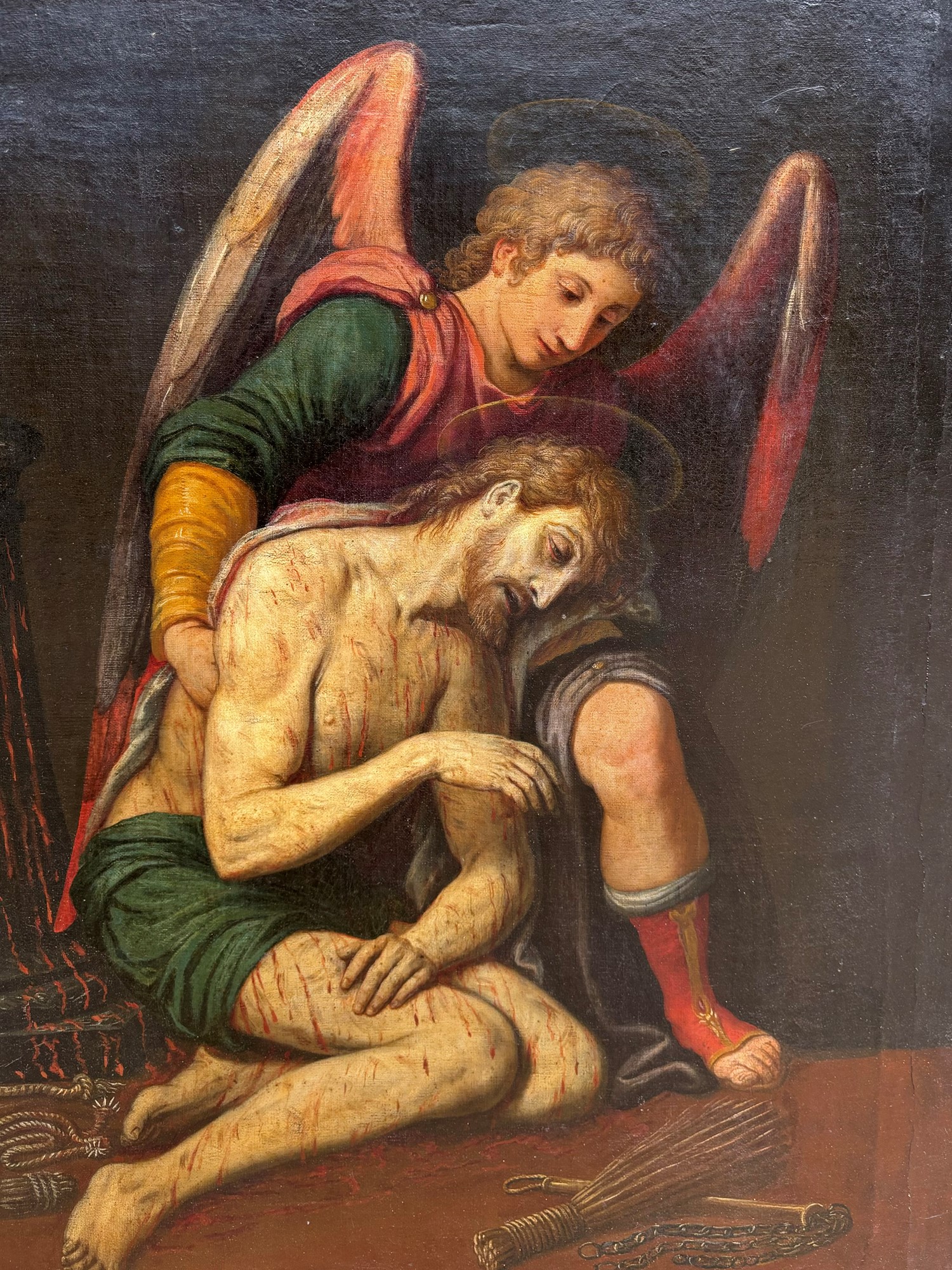 Scuola dell'Italia Settentrionale - Cristo sorretto da un angelo XVII secolo olio su tela 101 x 100 cm