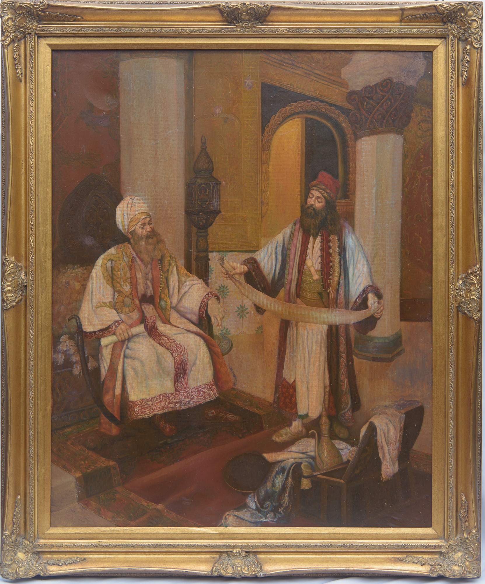 Coppia di personaggi orientali fine XIX secolo olio su tela 96 x 71 cm Scuola...