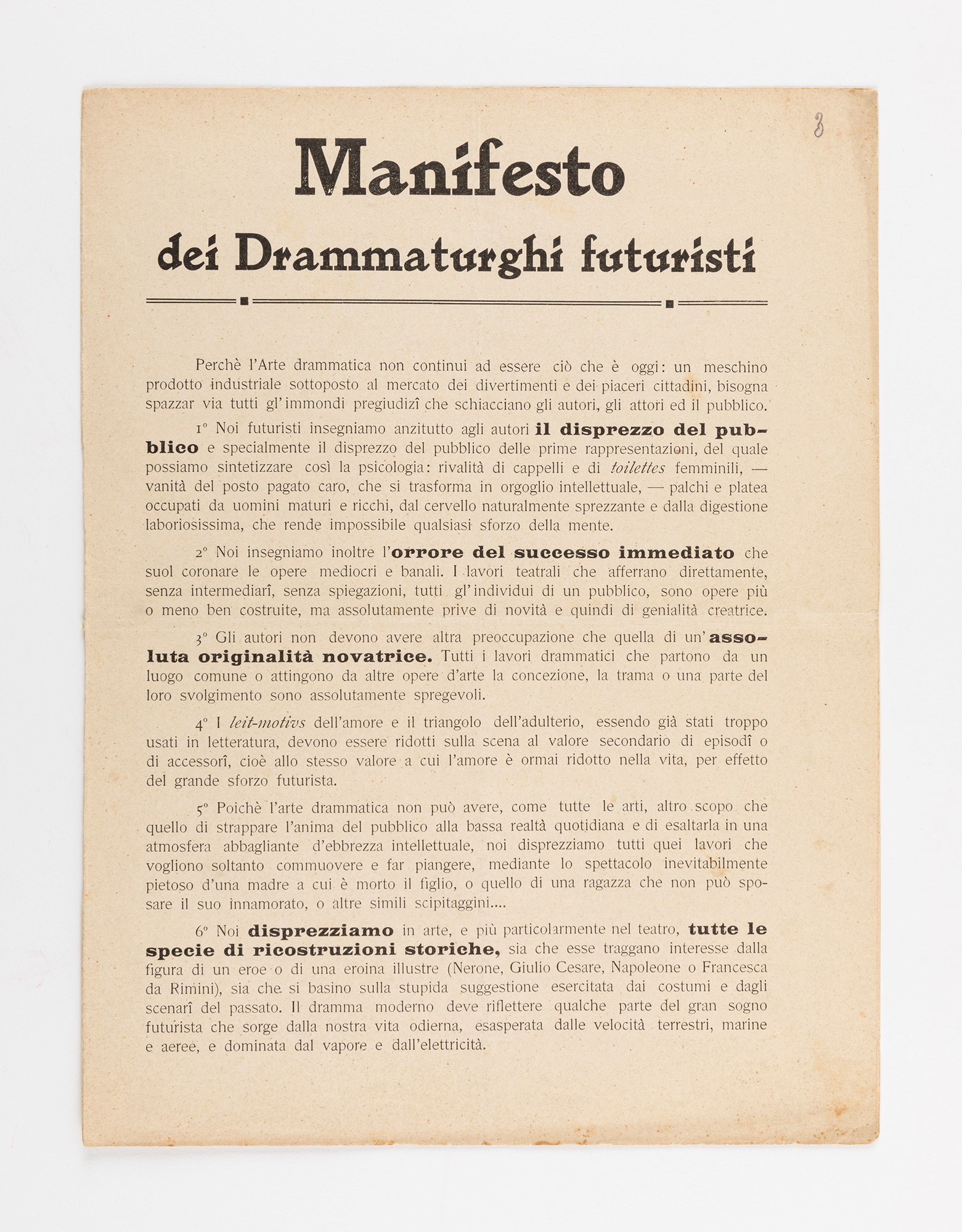 Filippo Tommaso Marinetti (rif.) - Manifesto dei Drammaturghi Futuristi, 1911