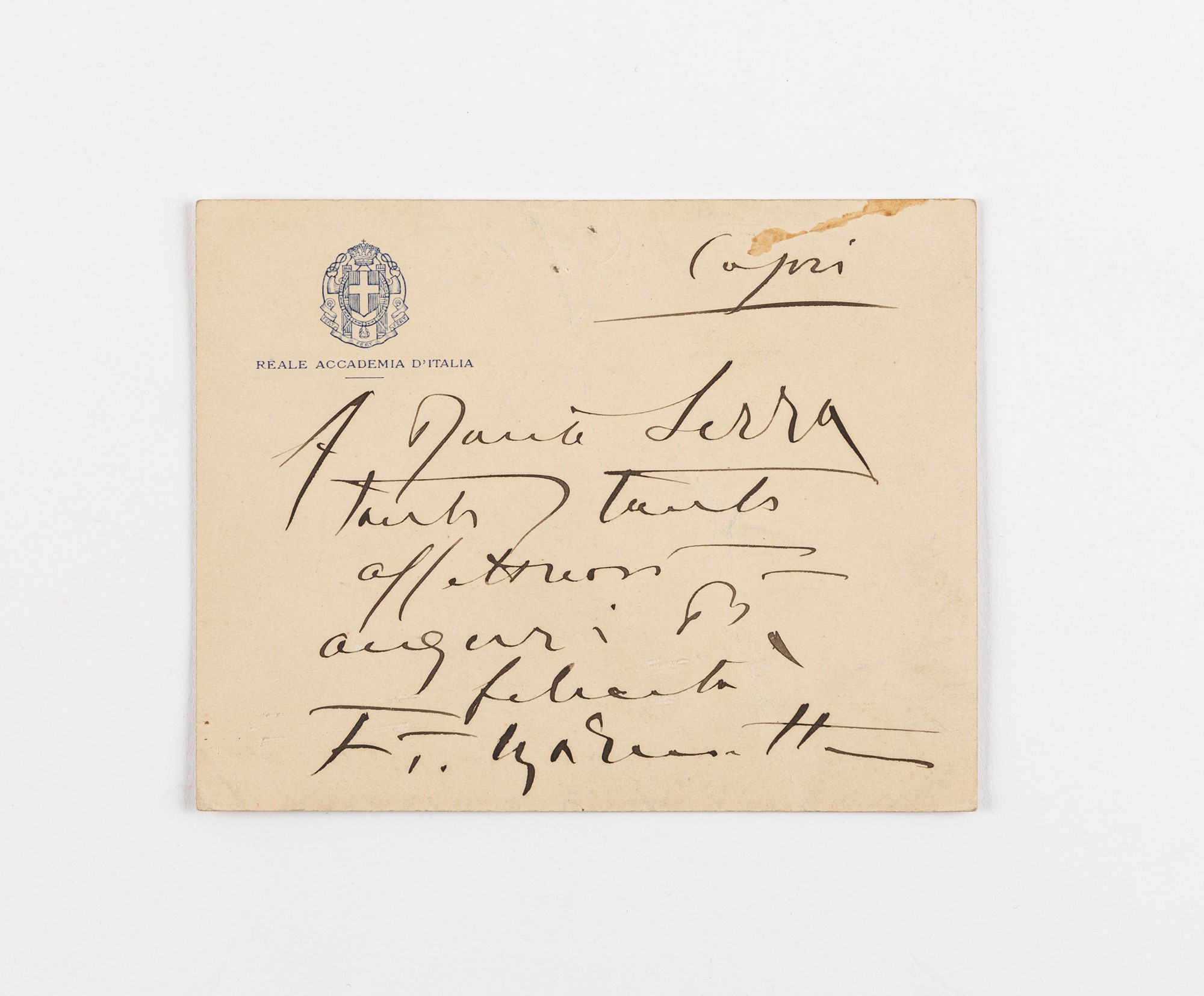 Lot 166 | Filippo Tommaso Marinetti (Alessandria d’Egitto 1876-Bellagio 1944) - Autografo su carta intestata della Reale Accademia d'Italia
