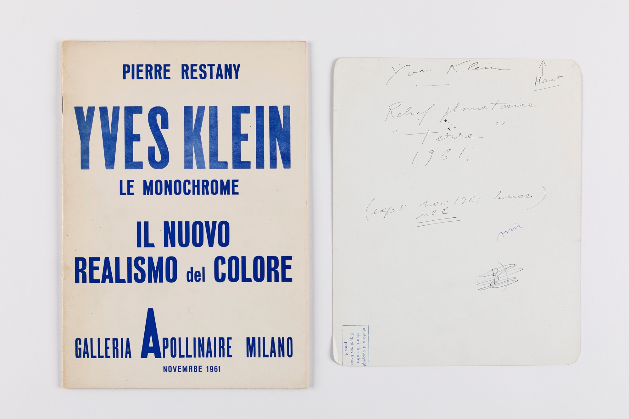 Yves Klein (rif.) - Shunk & Kender (XX sec., Nizza 1928-Parigi 1962) - lotto composto da 01 catalogo e 01 fotografia (a;b)
