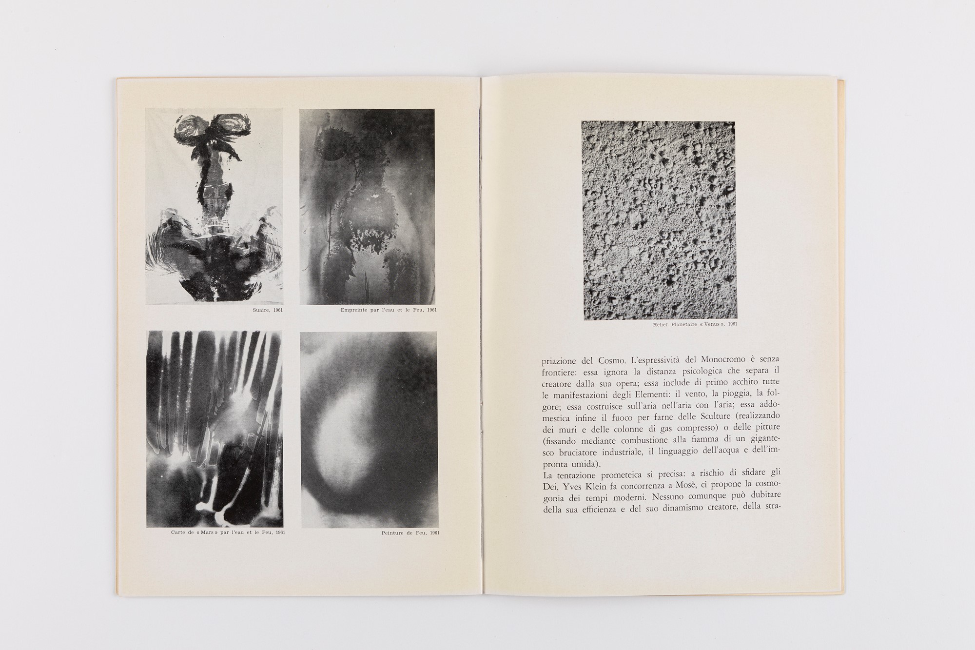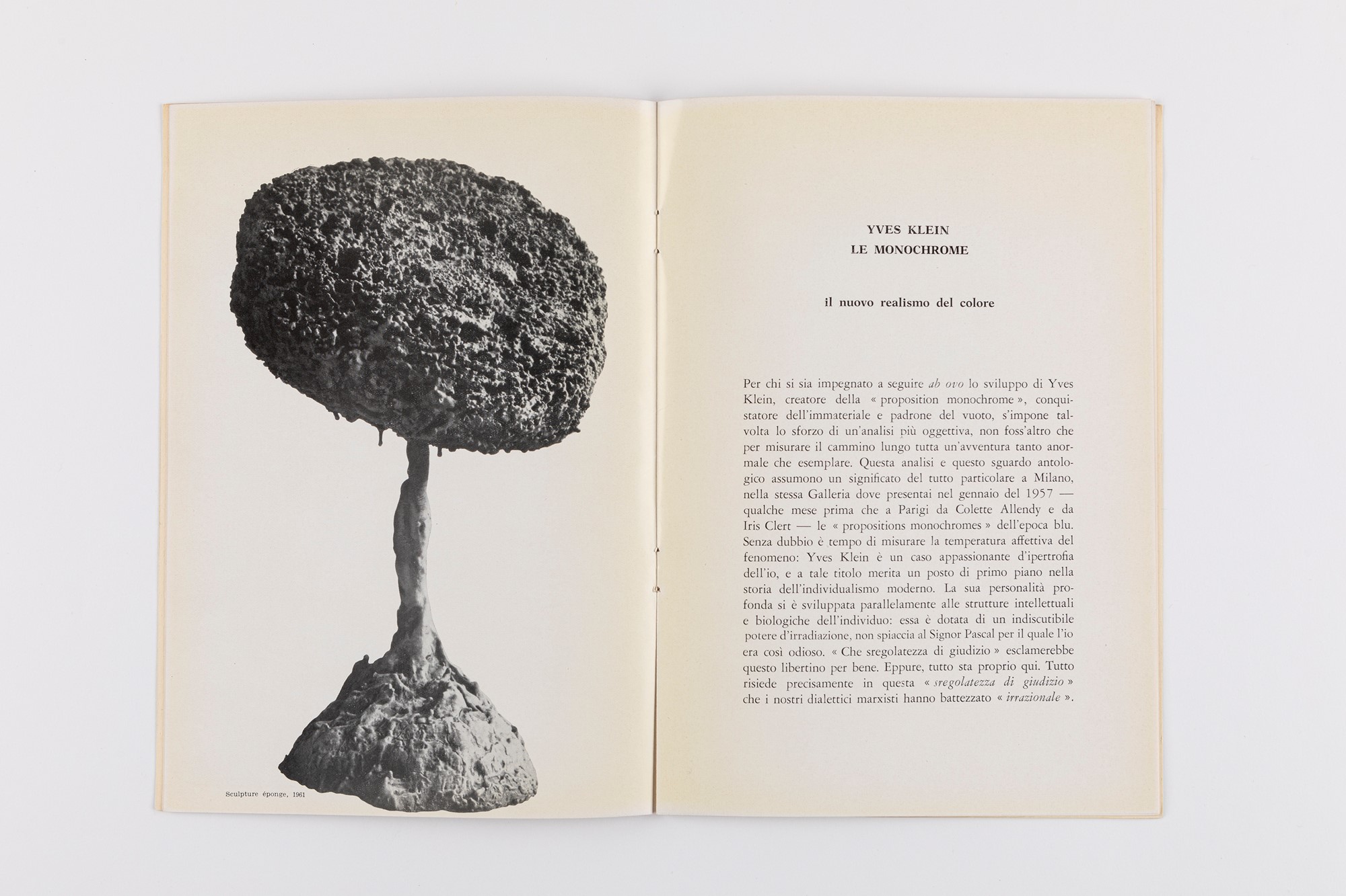 a. P. Restany, Yves Klein. Le Monochrome. Il nuovo realismo del colore, catalogo della mostra antologica (Milano, Galleria Apollinaire, Novembre 1961), cm 24,5 x 17