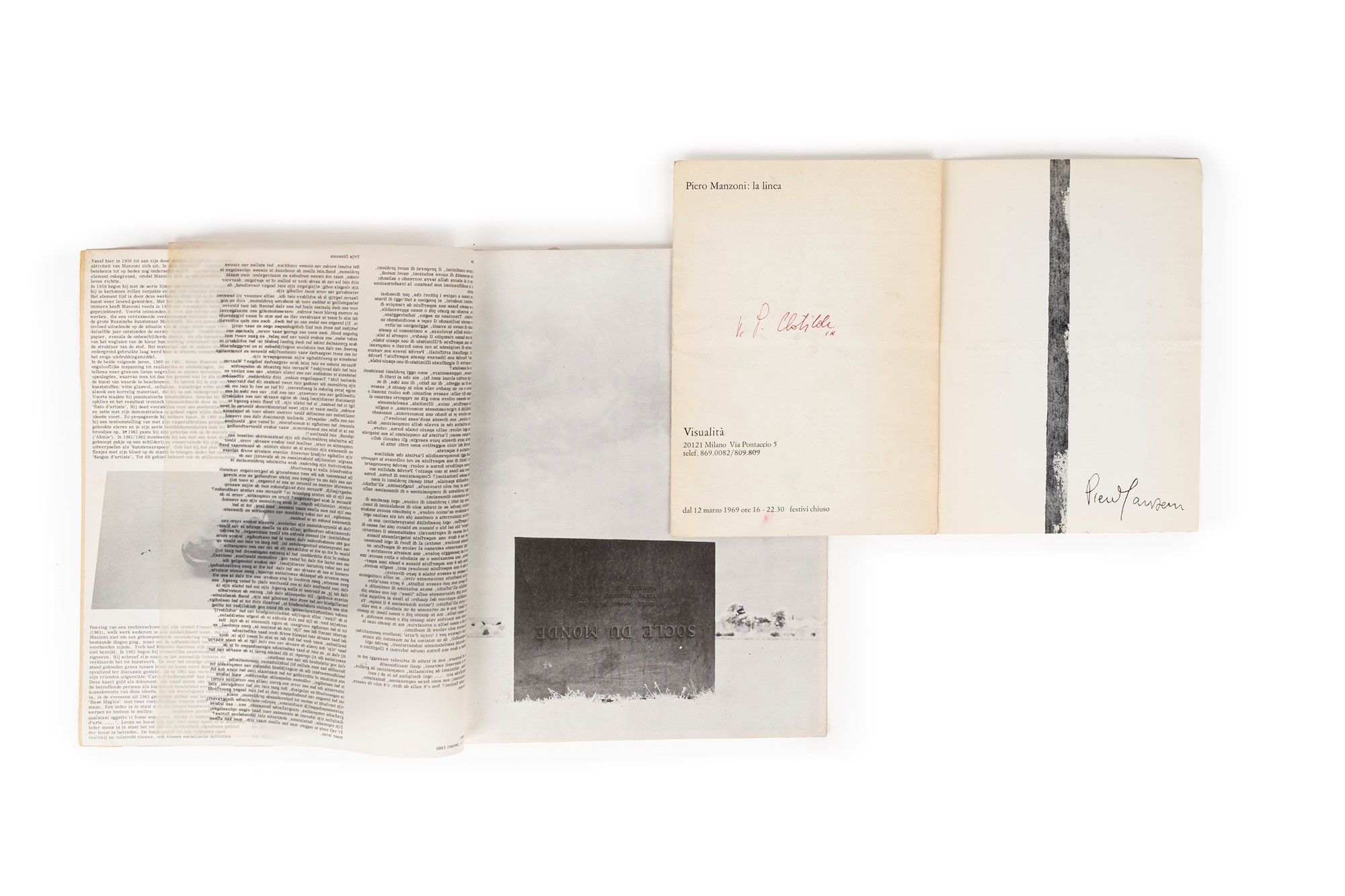 b) Catalogo della mostra personale Piero Manzoni: la linea, galleria Visualità, Milano, marzo 1969, cm 21 x 15
