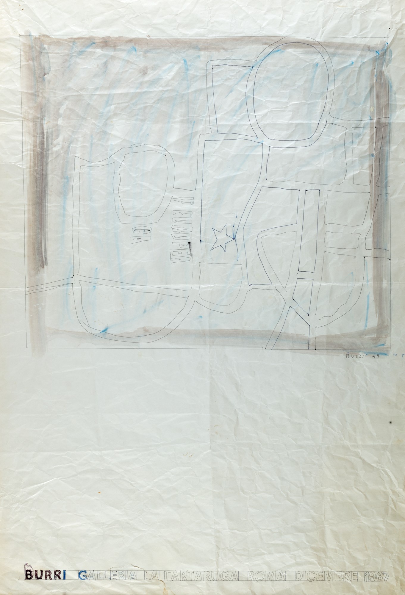 Alberto Burri (Città di Castello 1915-Nizza 1995) - Studio per manifesto alla galleria La Tartaruga, 1967