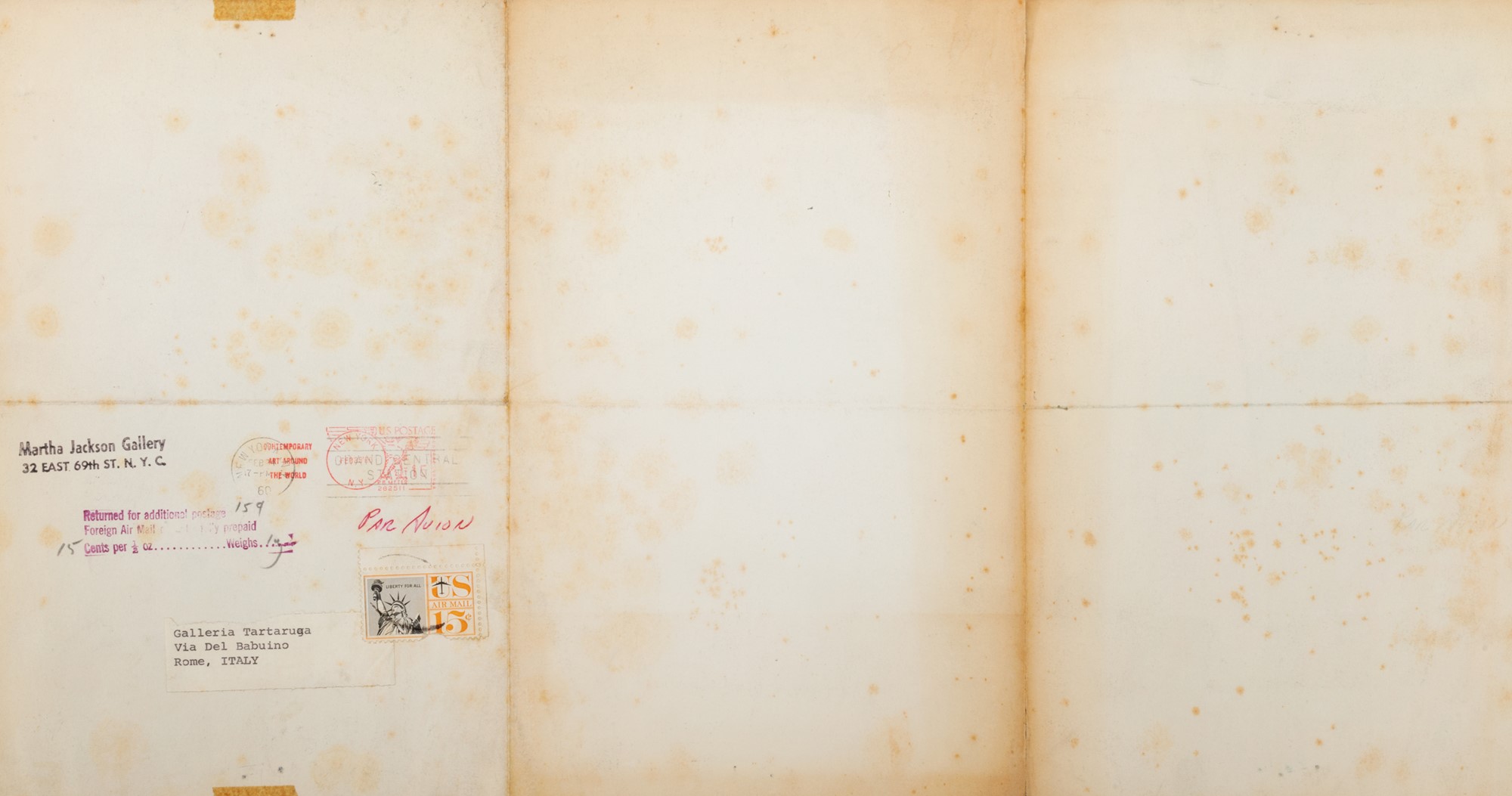 Al verso francobollo, timbri postali ed etichetta del destinatario La Tartaruga, Roma