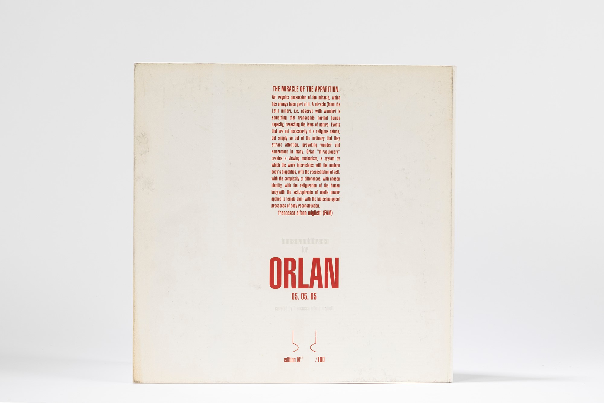 multiplo in cartone realizzato in occasione della mostra "Orlan" a cura di Francesca Alfano Miglietti, tenutasi presso la Galleria Tomaso Renoldi Bracco, Milano, 05 maggio - 20 giugno 2005