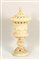 VASO A CALICE IN ALABASTRO - ALABASTER CALYX VASE XIX secolo - 19th Century corpo con teste leonine e festoni, collo e coperchio traforati, sostegno con foglie d'acanto su base circolare, montato a lume h cm 67