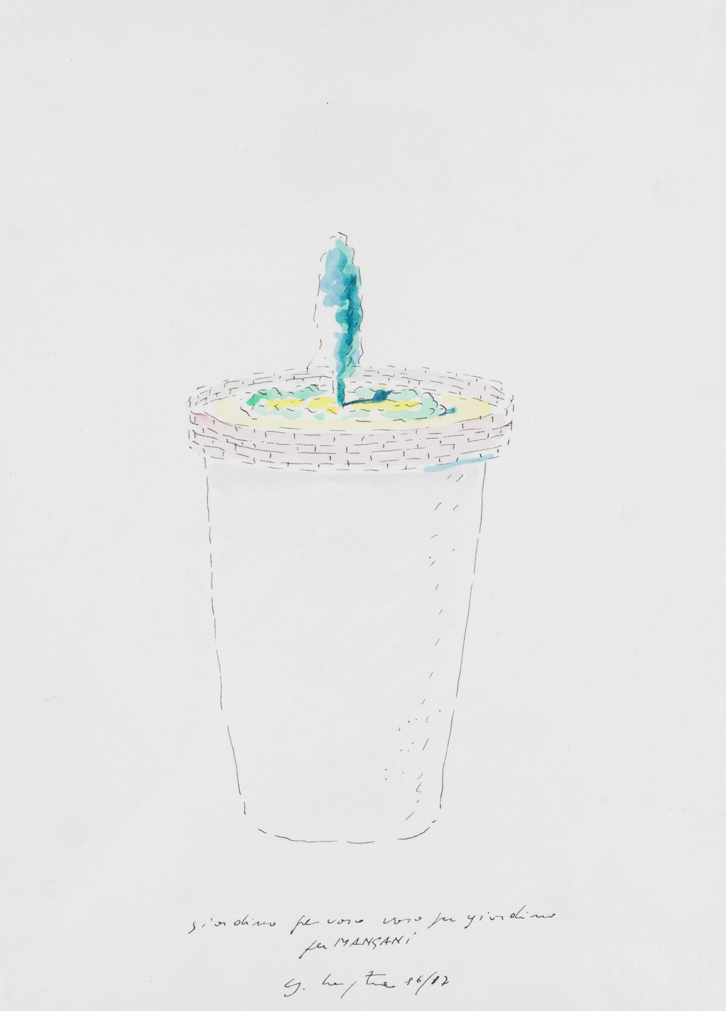 Titolato, firmato e datato in basso al centro: Giardino per vaso, vaso per giardino, U. La Pietra, 86/87
