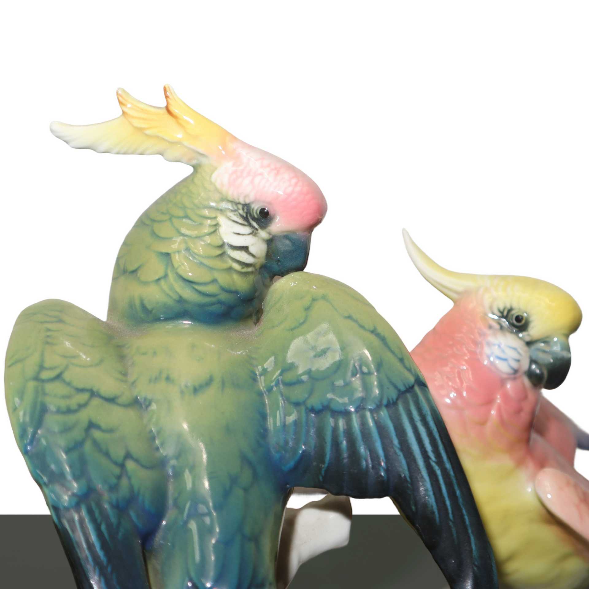 Porzellanfabrik Karl Ens (1889) - Coppia di pappagalli Cacatua su Monte Bianco in porcellana policroma