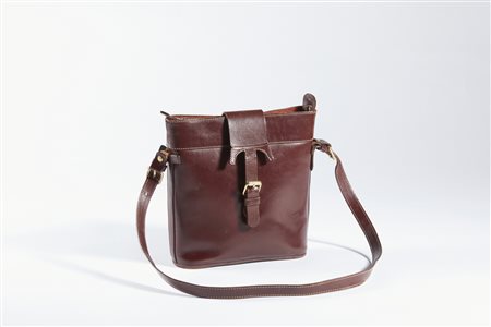 Borsa modello postina, in pelle marrone. Chiusura con zip e tracolla. Motivo decorativo con logo Trussardi sul fronte.