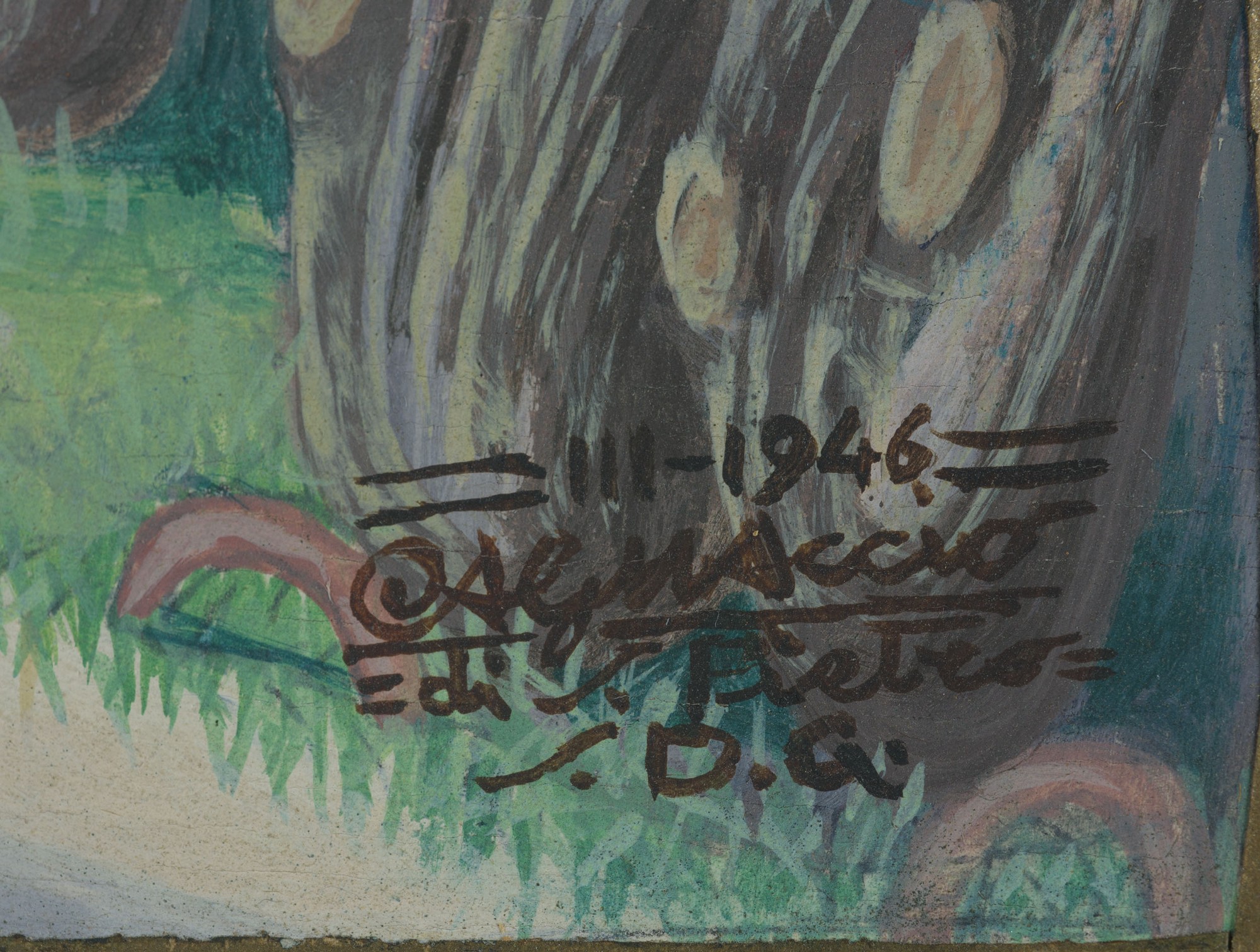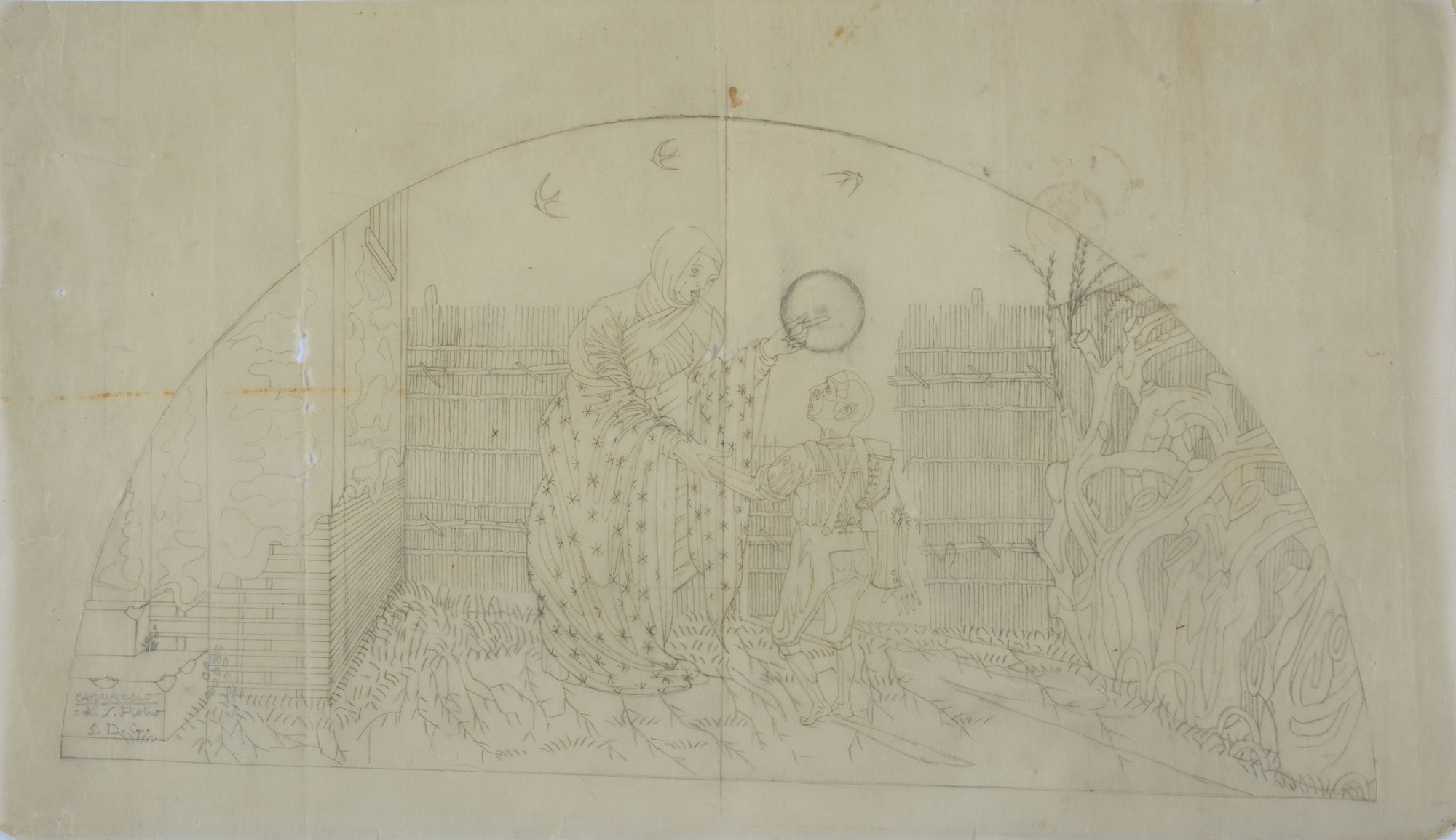 Il lotto comprende l'opera sopra descritta, la velina per il progetto (cm 31,5 x 54,5) e il bozzetto scala 1:10 (cm 24 x 50), firmata in basso a sinistra e in alto a sinistra