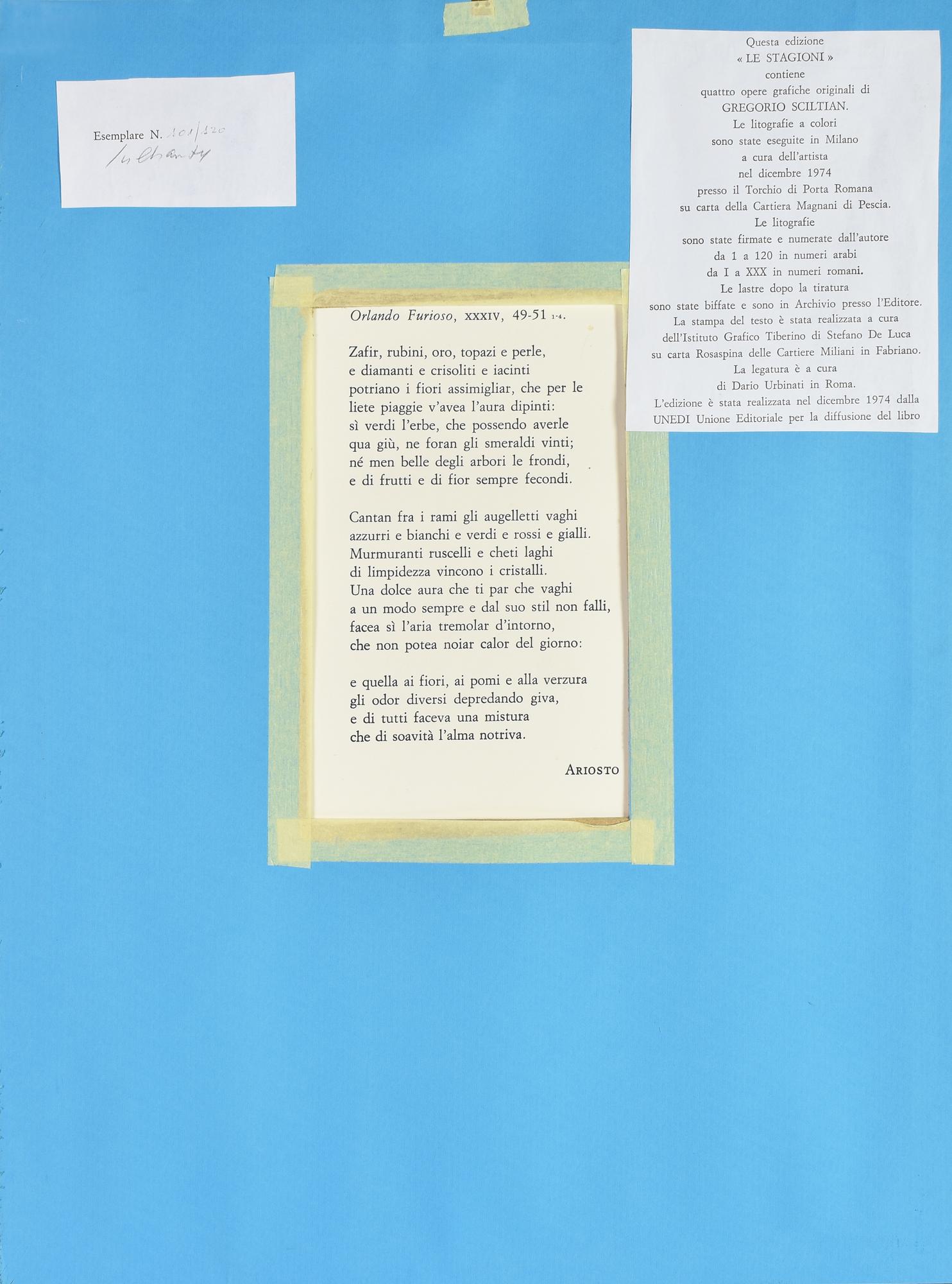 Gregorio Sciltian L'AUTUNNO, 1974 litografia su carta, cm 70x50; es. 101/120...