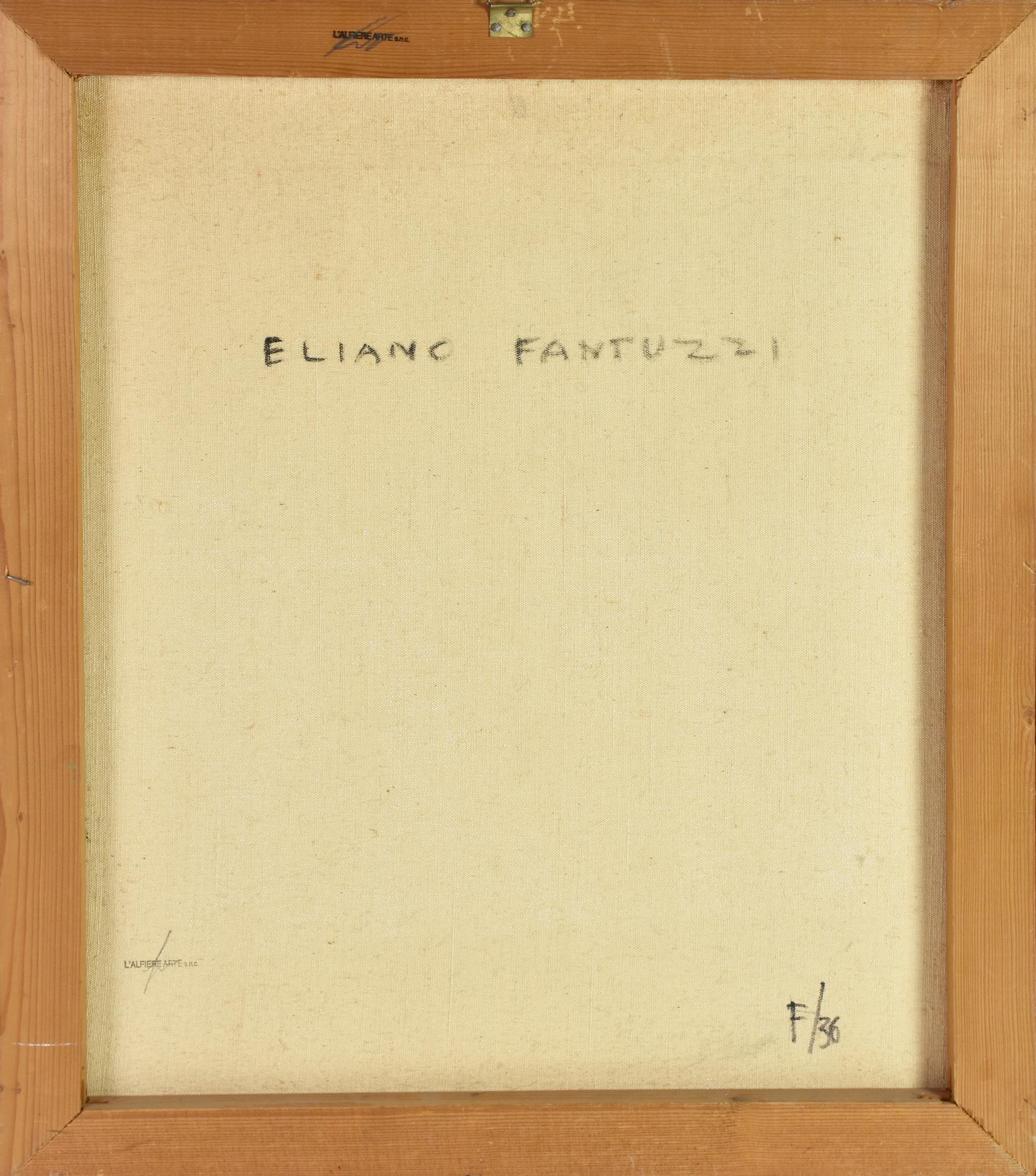 Eliano Fantuzzi INTERNO BAR olio su tela, cm 60x50 firma sul retro: firma e...