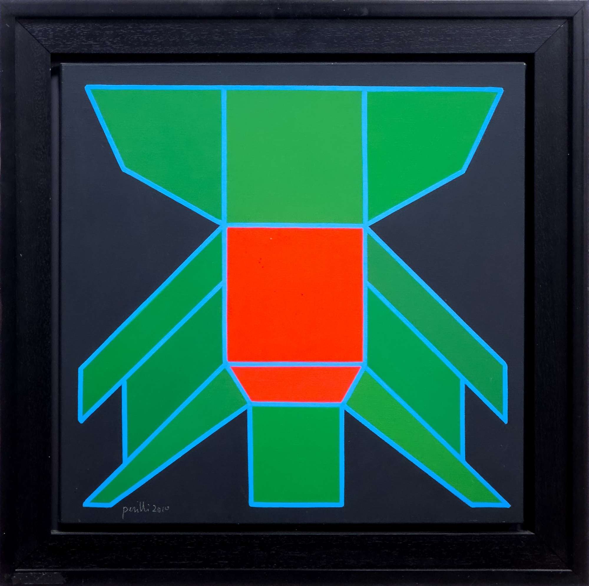Achille Perilli, Il tramonto rosso, 2010, tecnica mista su tela, 50x50 cm, archiviata con il N.165 del 2010, pubblicata in Catalogo Generale dei dipinti e delle sculture 2007-2016 a pagina 536 n. 3851, opera soggetta a diritto di seguito