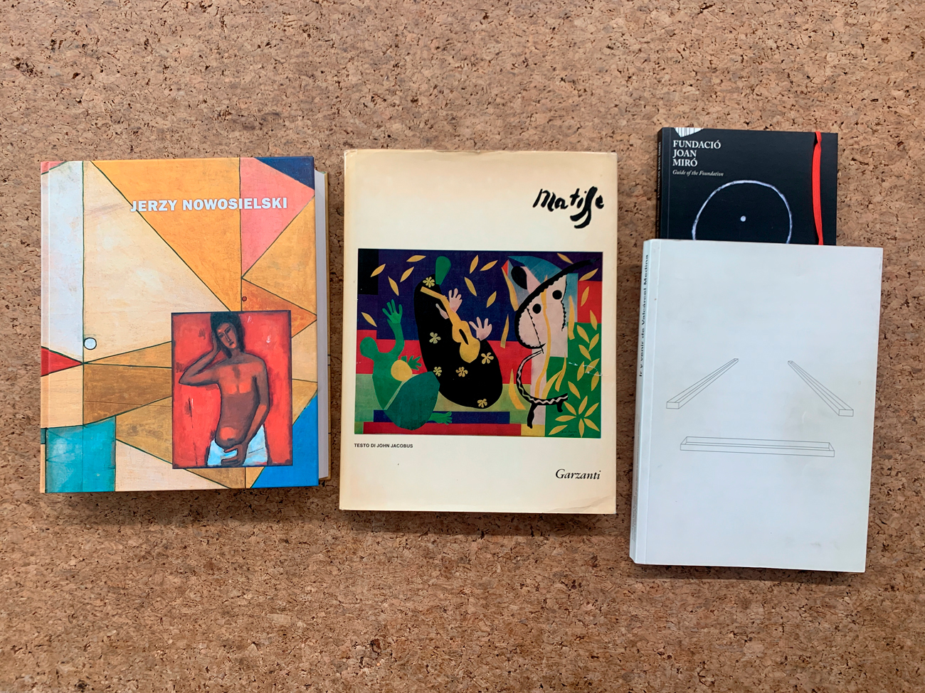 Si allega una guida in lingua inglese alla Fondazione Joan Miro (Ediciones Poligrafa) e un catalogo monografico dedicato all'artista concettuale spagnolo Isidoro Valcárcel Medina