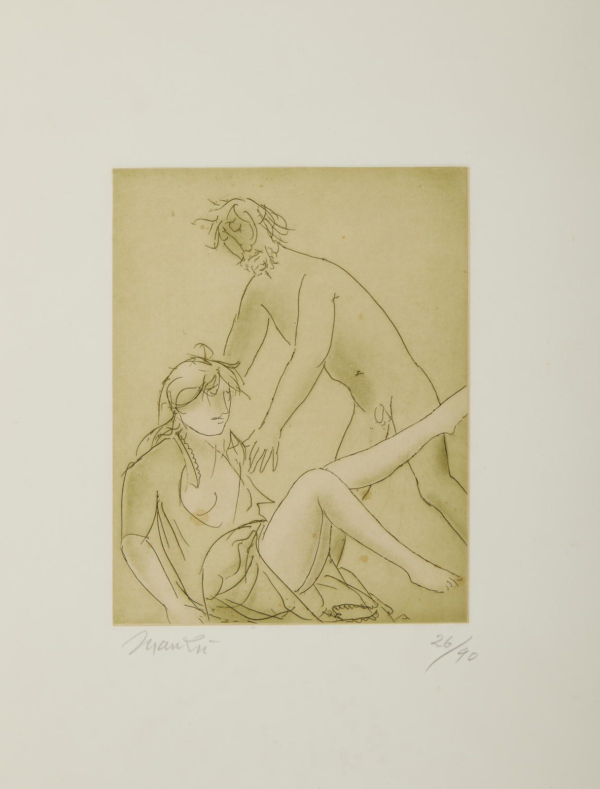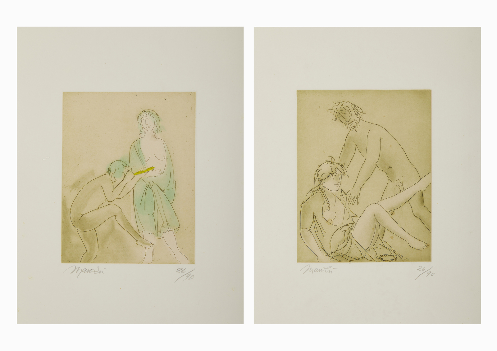 MANZU' GIACOMO (1908 - 1991) SENZA TITOLO. acquaforte. Cm 36,00 x 50,00. lotto composto da n.2 fogli