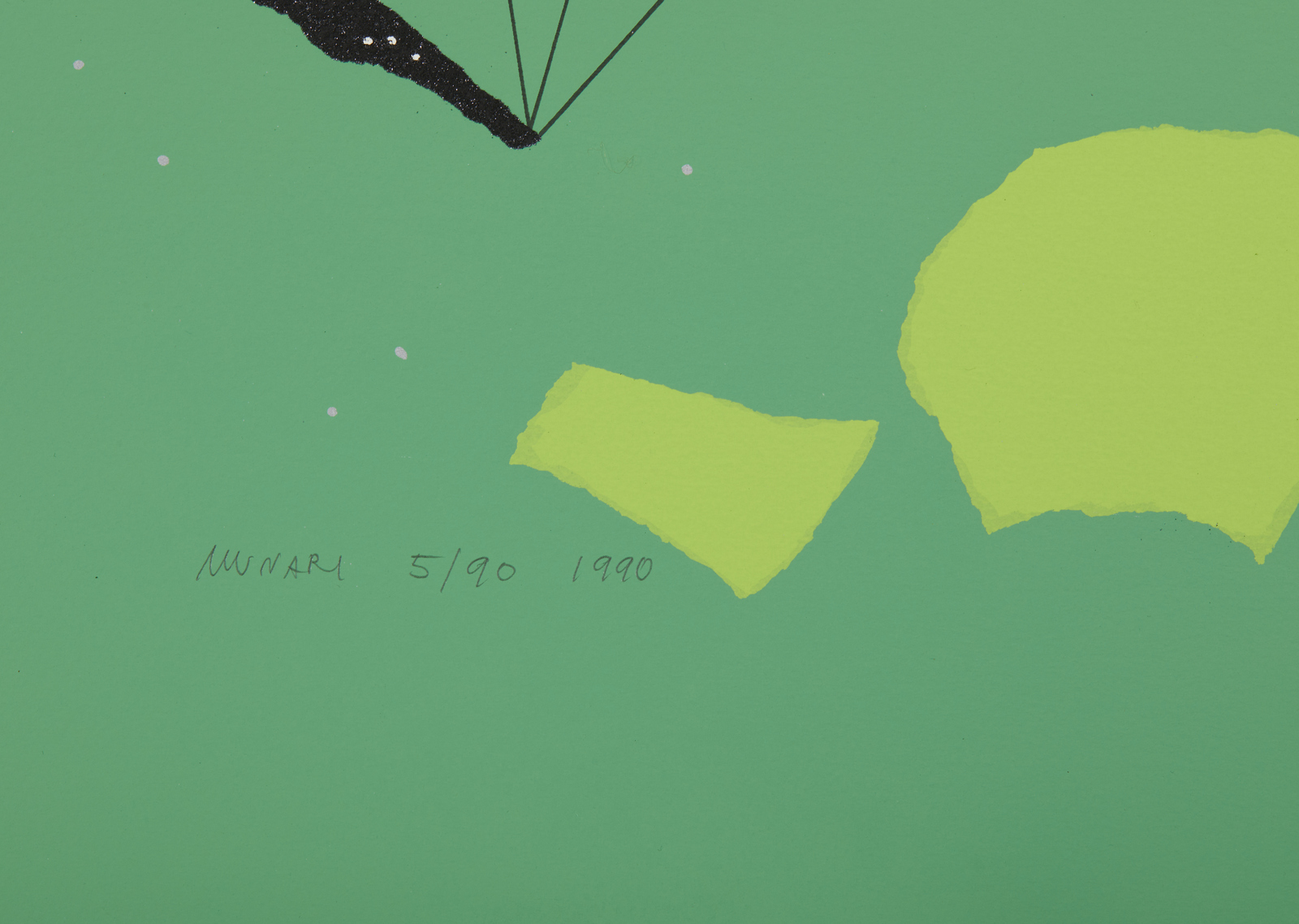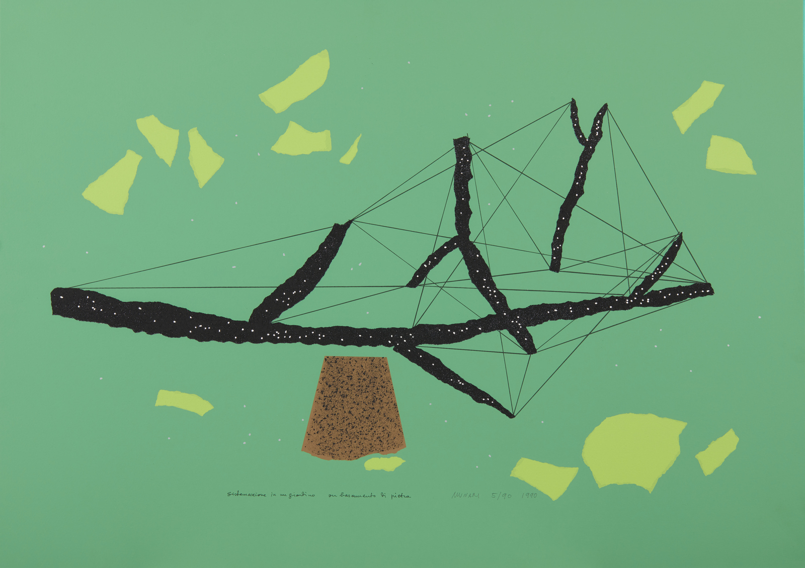 MUNARI BRUNO (1907 - 1998) SISTEMAZIONE IN UN GIARDINO SU BASAMENTO DI PIETRA, 1990. Serigrafia.. Cm 49,00 x 69,00. firma, data, titolo e tiratura, es.5/90