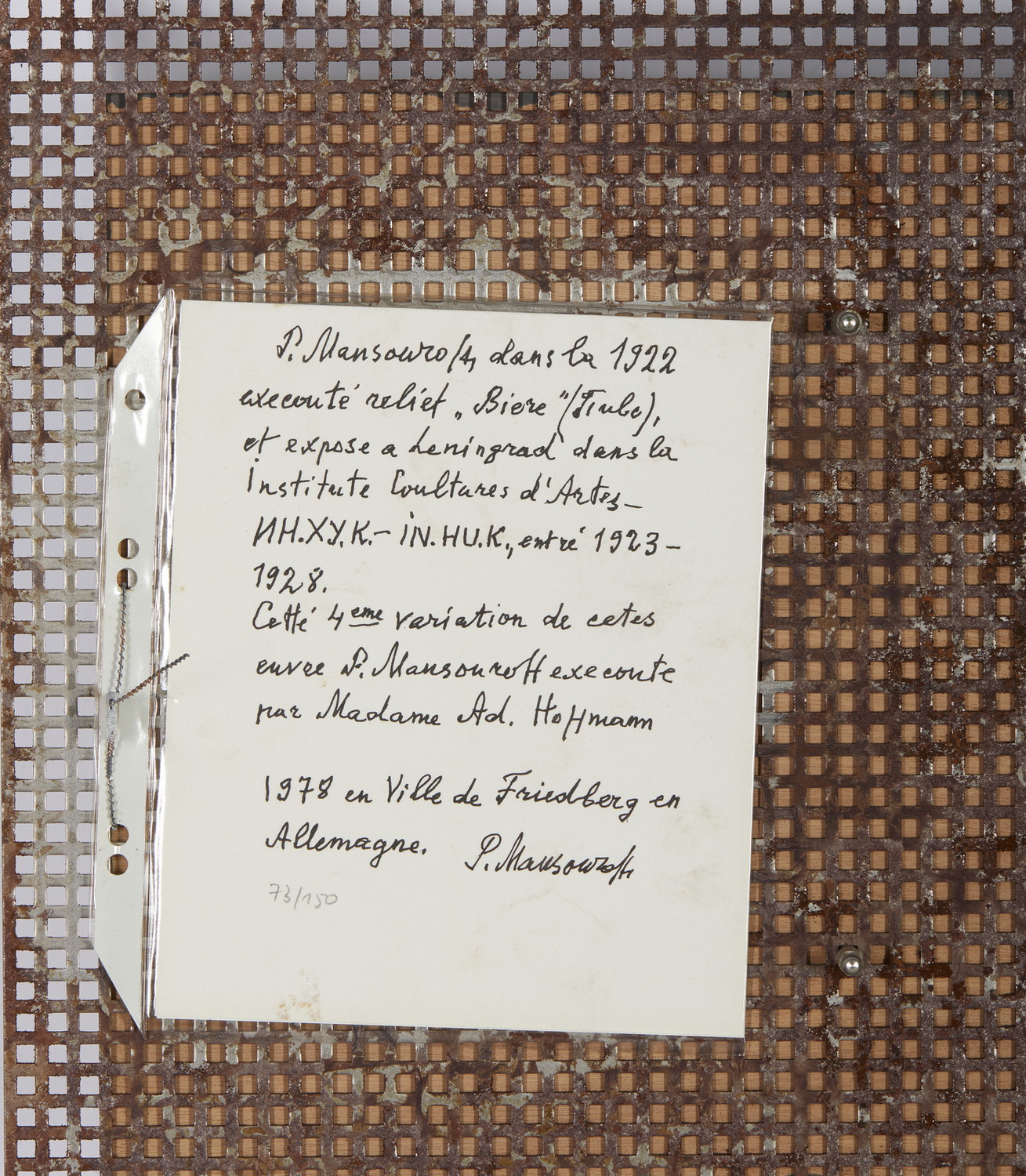 MANSOUROFF PAUL (1896 - 1983) BIERE,1978. multiplo in legno, acciaio, alluminio serigrafati. Cm 33,00 x 83,00 x 9,00. es. 73/150