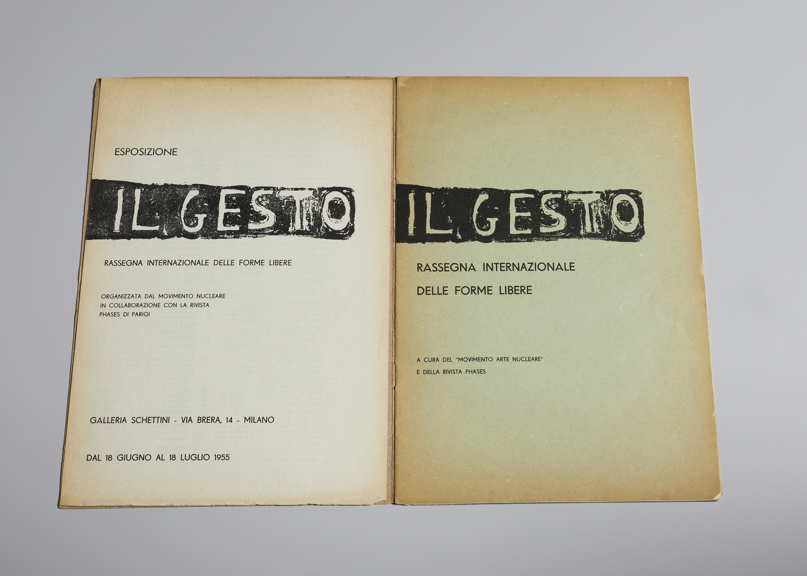 AUTORI VARI IL GESTO #1, 1955. Rivista. Cm 22,50 x 33,50. rivista a cura del Movimento Arte Nucleare, edito in occasione dell'esposizione tenutasi presso Galleria Schettini, Milano, 1955