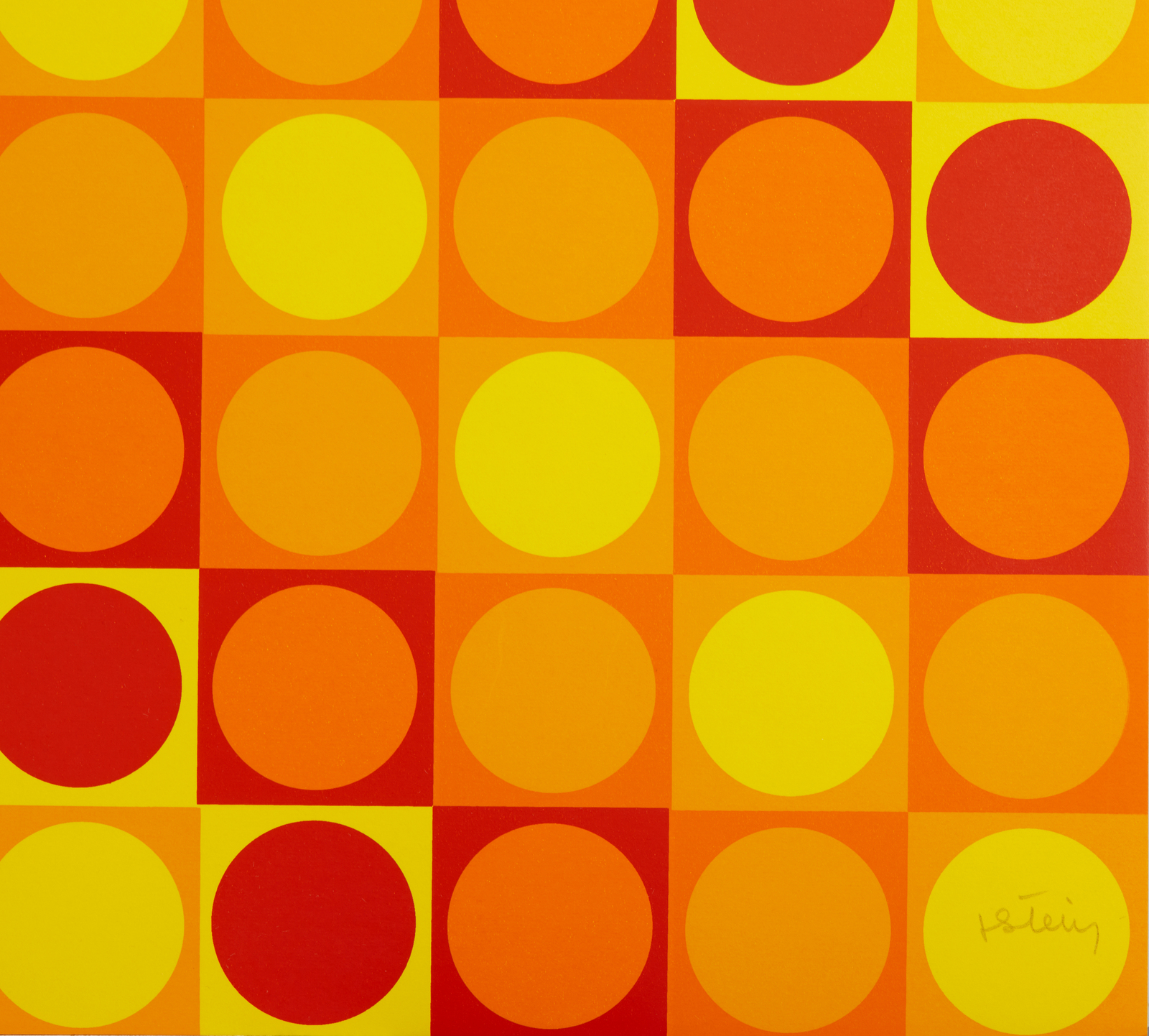 Cartella realizzata in occasione della mostra retrospettiva, Lago di Como, 20/30 settembre 1975 a cura di Luciano Caramel del Groupe de Recherche d'Art Visuel ( Garcia Rossi, Le Parc, Morellet, Sobrino, Stein, Yvaral).