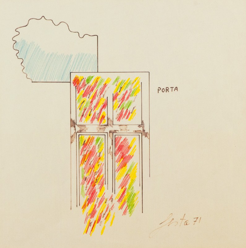 Tano Festa (Roma 1938 - 1987) PORTA, 1971 Pennarello su carta, cm. 49x48 Firma e data in basso a destra, titolo in alto a destra.