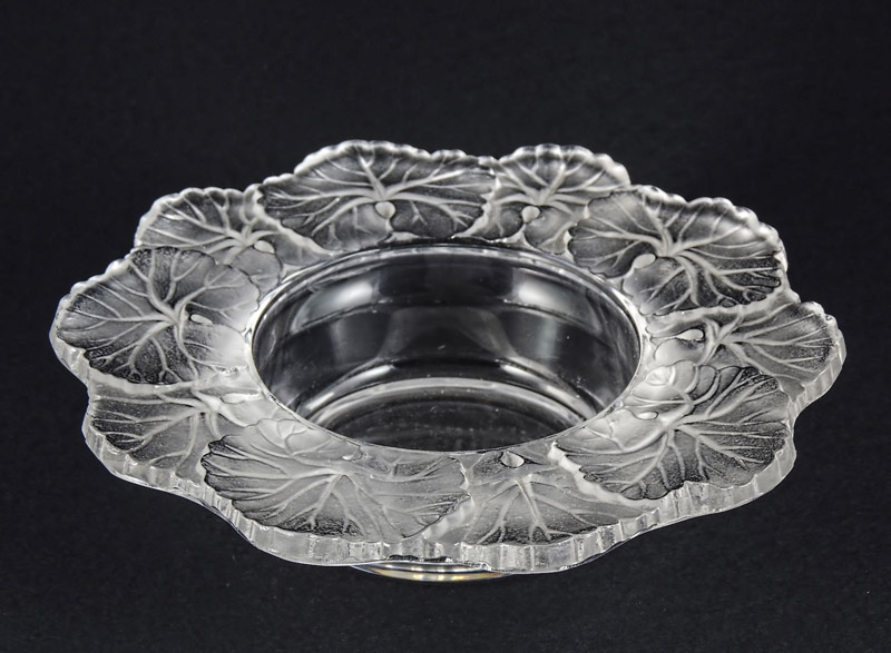 PORTACENERE "HONFLEUR" IN CRISTALLO - CRYSTAL ASHTRAY "HONFLEUR" Francia, Lalique - France, Lalique bordo ornato con foglie di begonia in rilievo diam cm 15 Firma incisa sotto la base