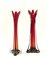 COPPIA DI VASI IN VETRO SOFFIATO - PAIR OF BLOWN GLASS VASES nei toni del rosso, di forma allungata h cm 40