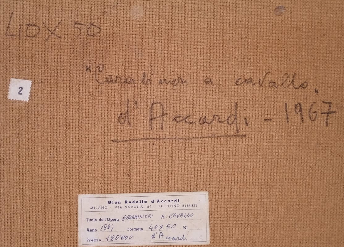 Lot 55 | D'ACCARDI GIAN RODOLFO Palermo (Pa) 1906 Carabinieri a cavallo 1967 Olio su...