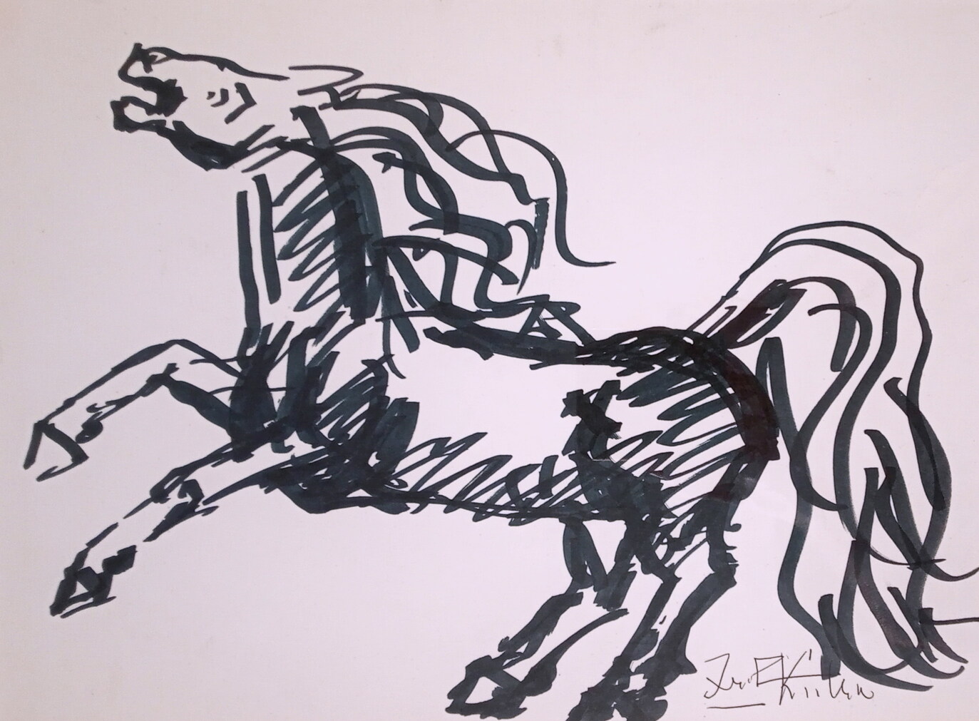 KODRA IBRAHIM Ishëm (Albania) 1918 Cavallo Pennarello su cartoncino...