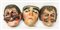 TRE ANTICHE MASCHERE IN LEGNO INTAGLIATO E DIPINTO - THREE OLD CARVED AND PAINTED WOODEN MASKS raffiguranti volti maschili
