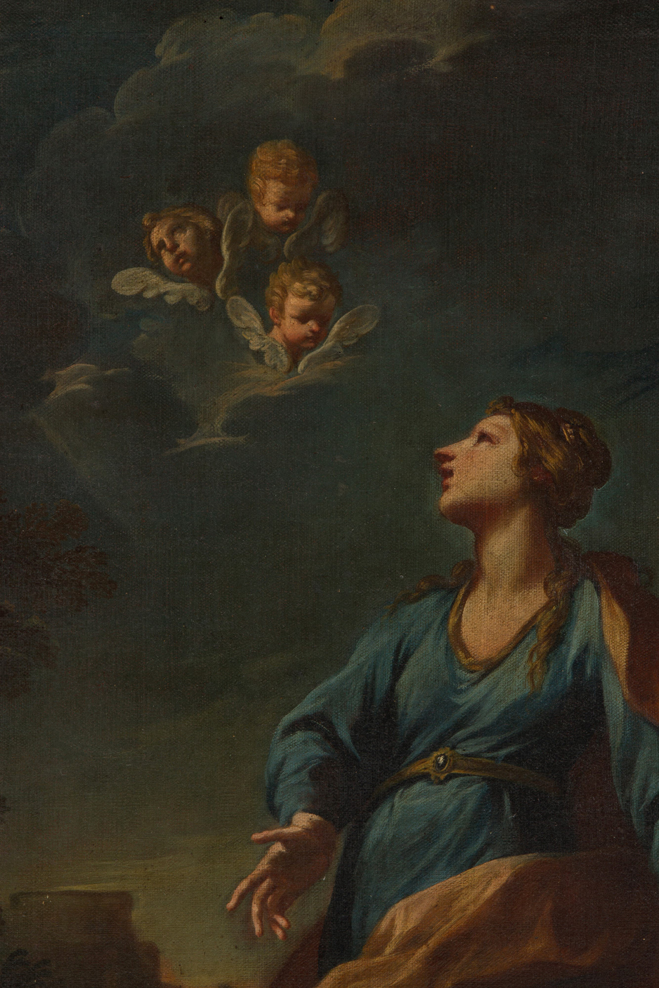 Oil painting on canvas depicting "SANTA BARBARA". 18th century. In a golden frame. Defects and restorations. 101x77 cm approx. Dipinto olio su tela raffigurante "SANTA BARBARA". XVIII secolo. In cornice dorata. Difetti e restauri. 101x77 cm ca.