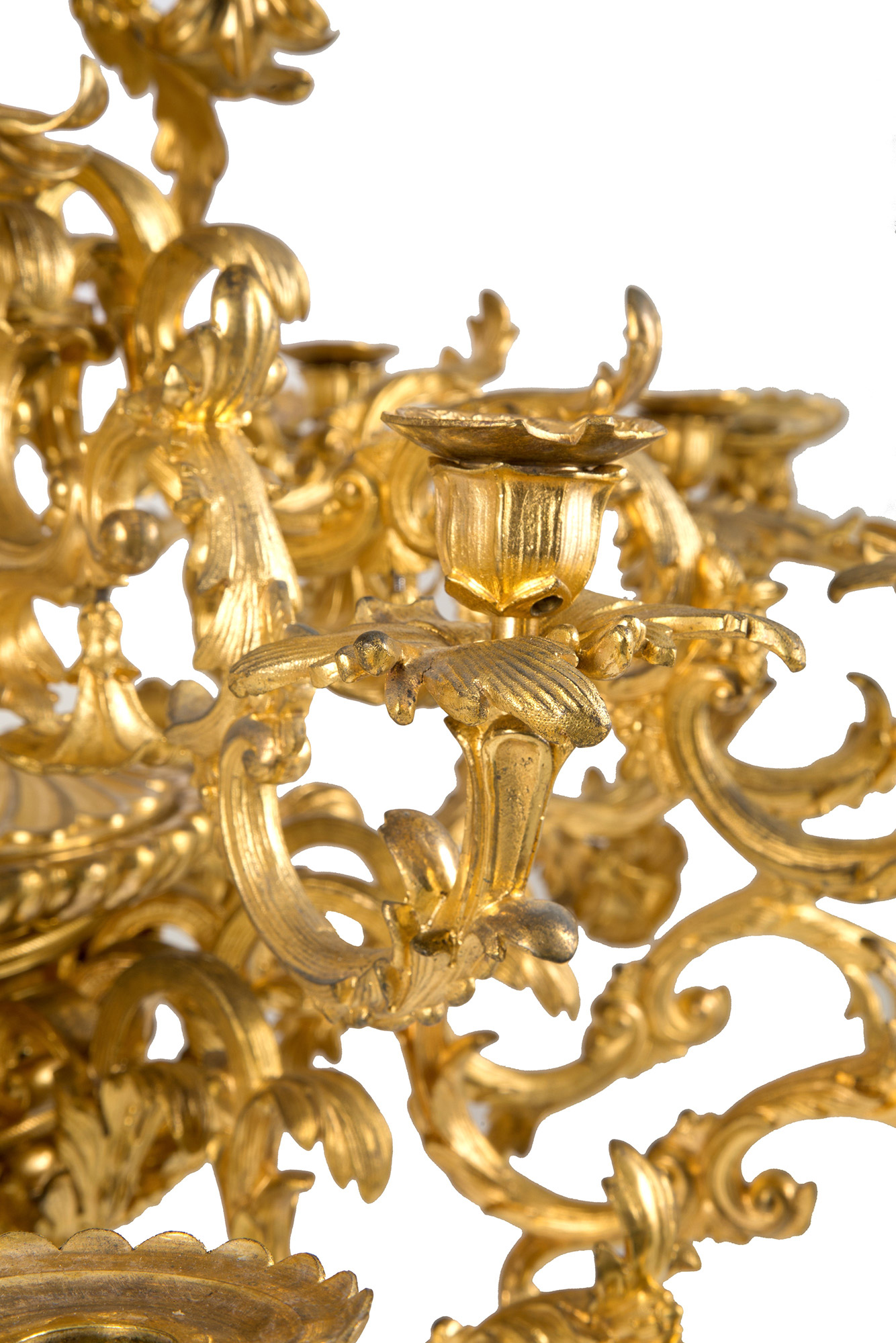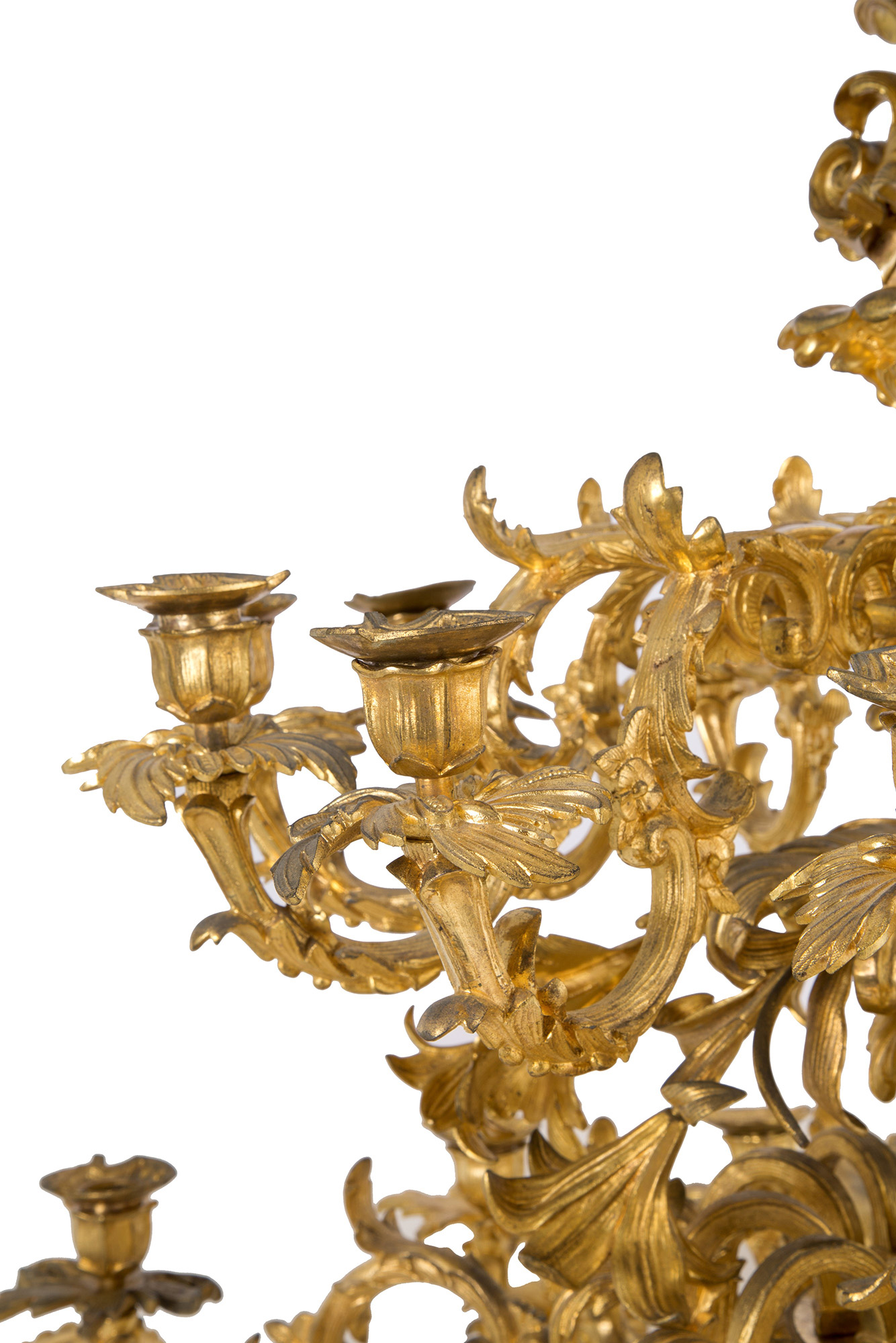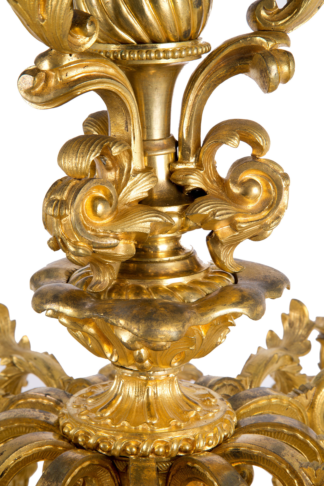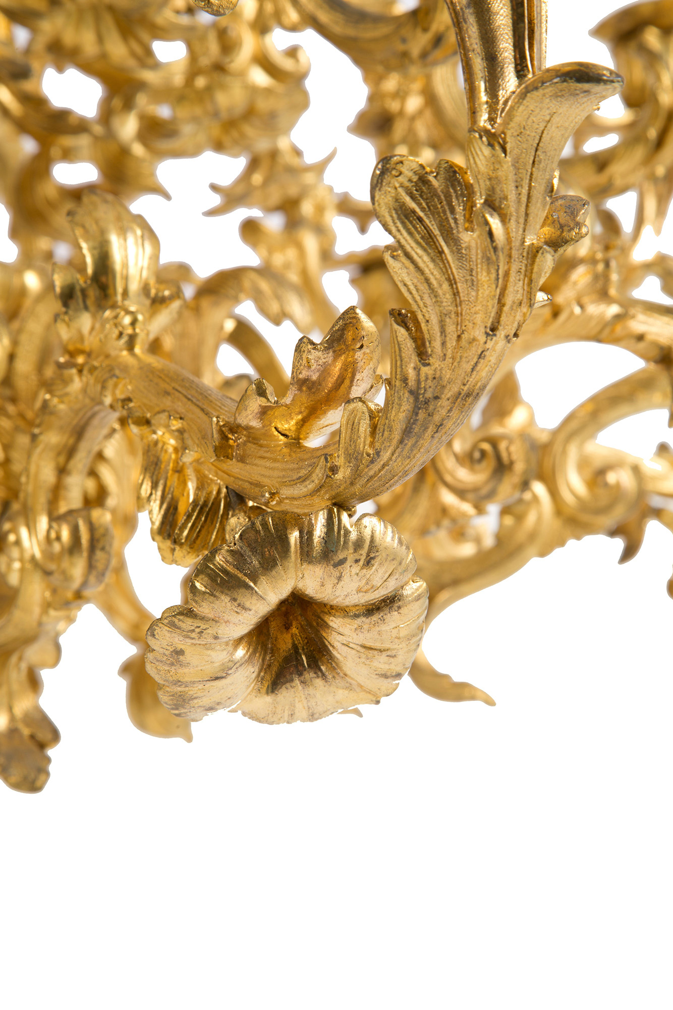 Three-stage gilt bronze chandelier, total weight approx. 87 kg. Transition period Louis XV-Louis XVII. 140x115 cm approx. Lampadario in bronzo dorato a tre palchi, peso complessivo 87 kg ca. Periodo transizione Luigi XV-Luigi XVII. 140x115 cm ca.