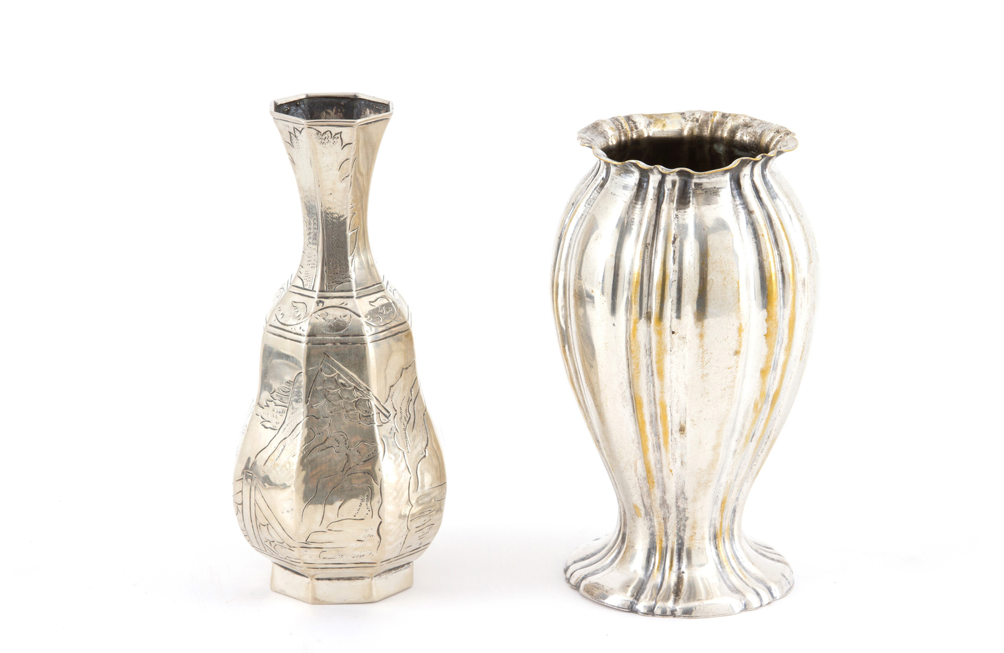 Two silver vases