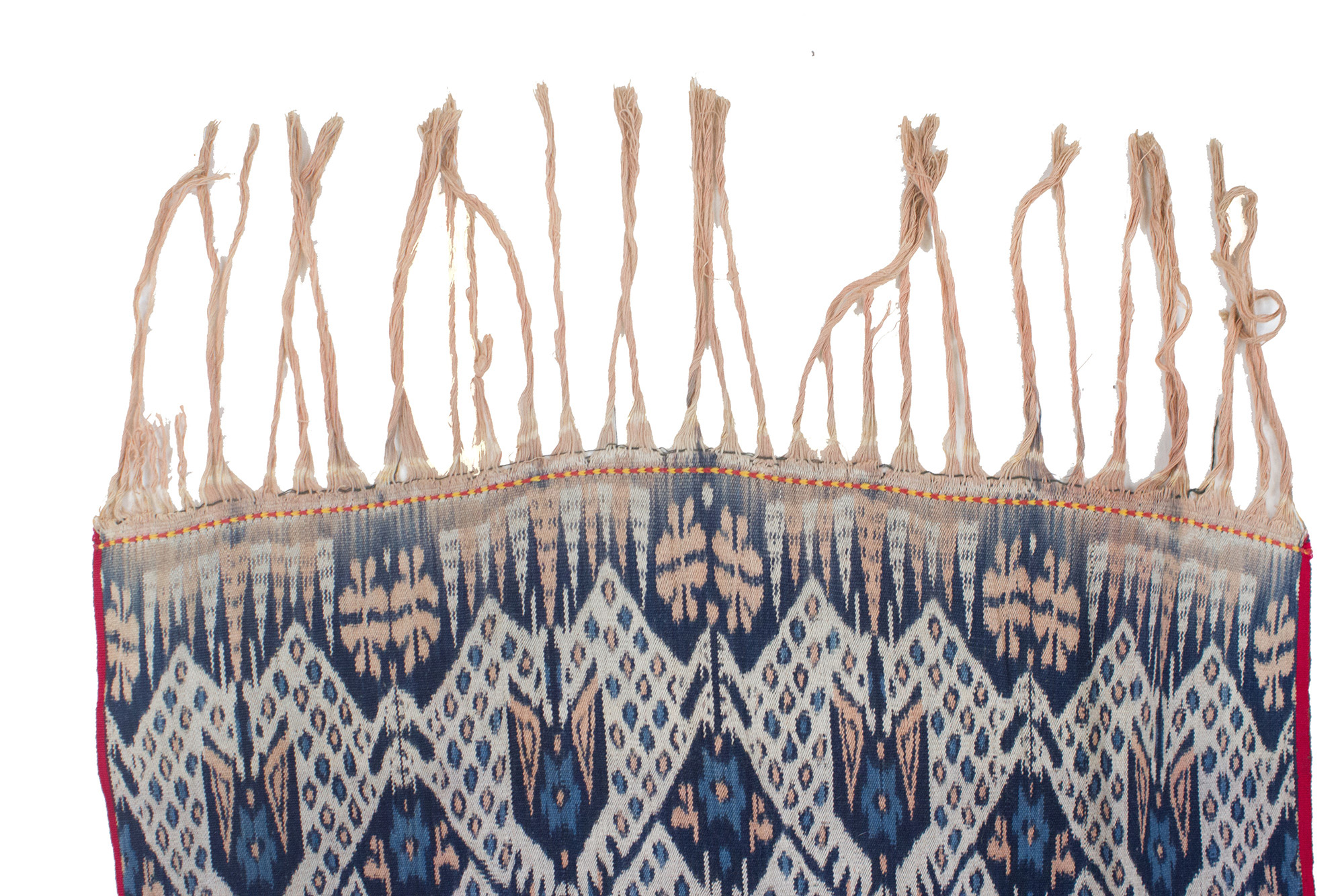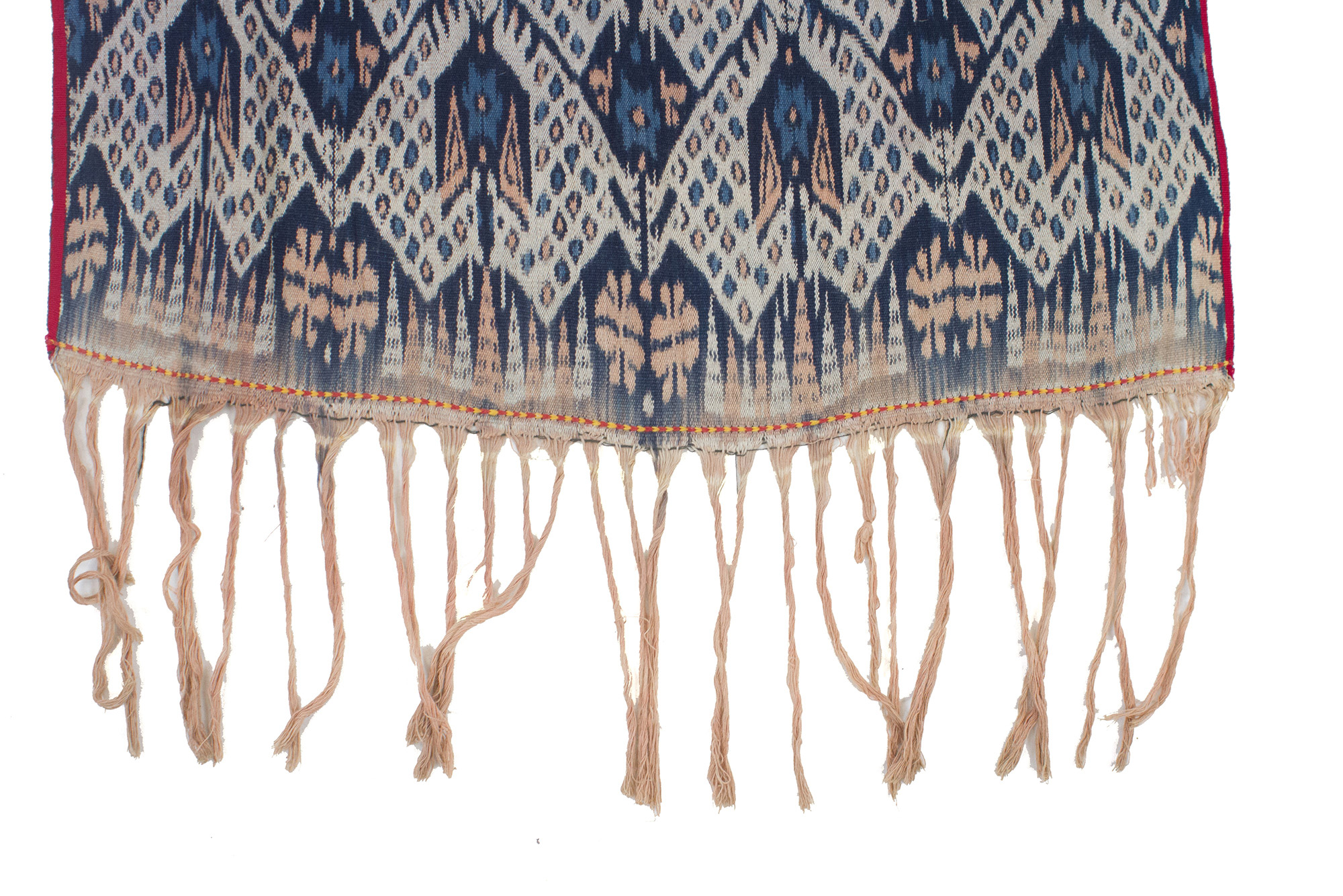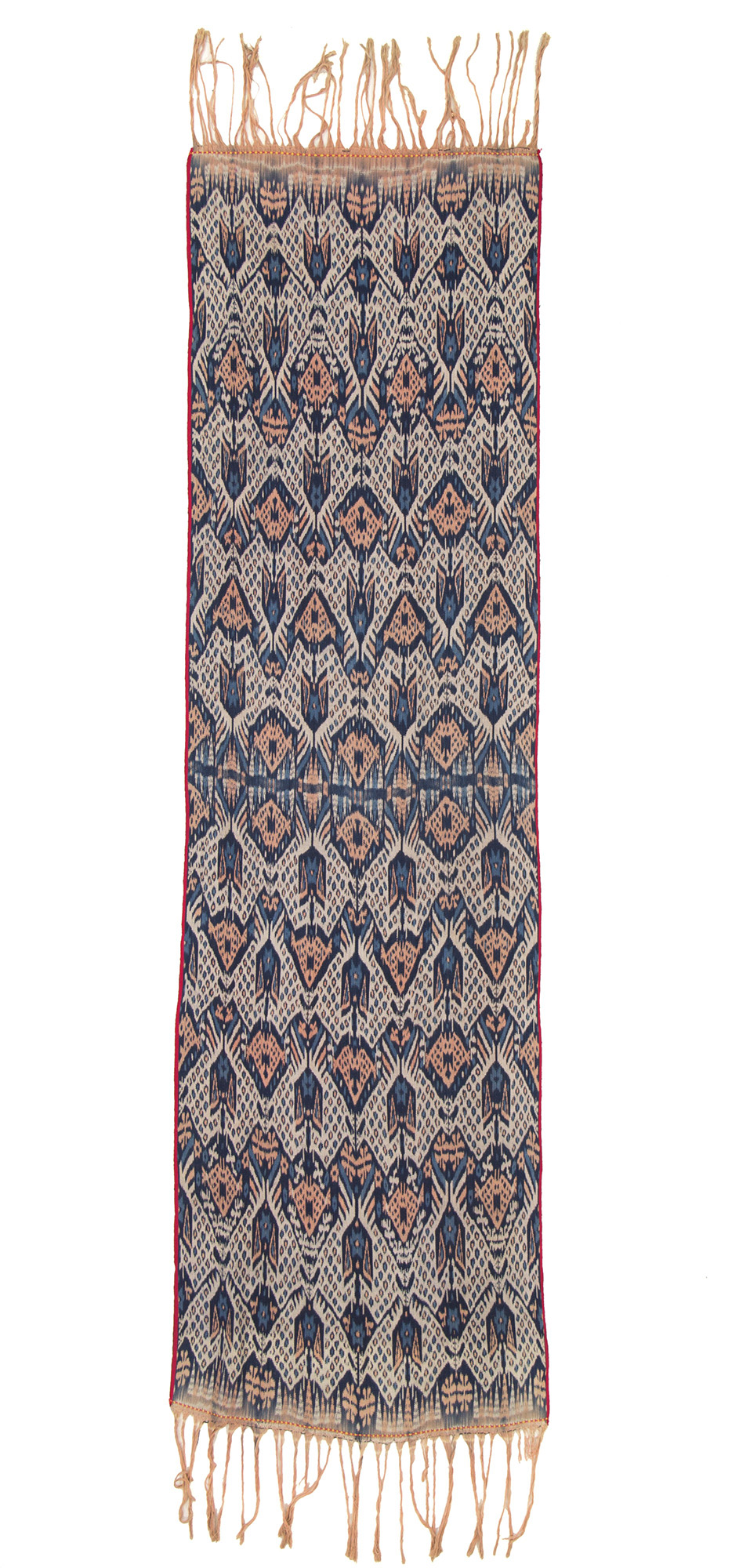 Timor Ikat fabric. Indonesia. 20th century. Excellent state of conservation. Original headers and edges, without restorations. 55x200cm approx. Tessuto Ikat Timor. Indonesia. XX secolo. Eccellente stato di conservazione. Testate e bordi originali, senza restauri. 55x200 cm ca.
