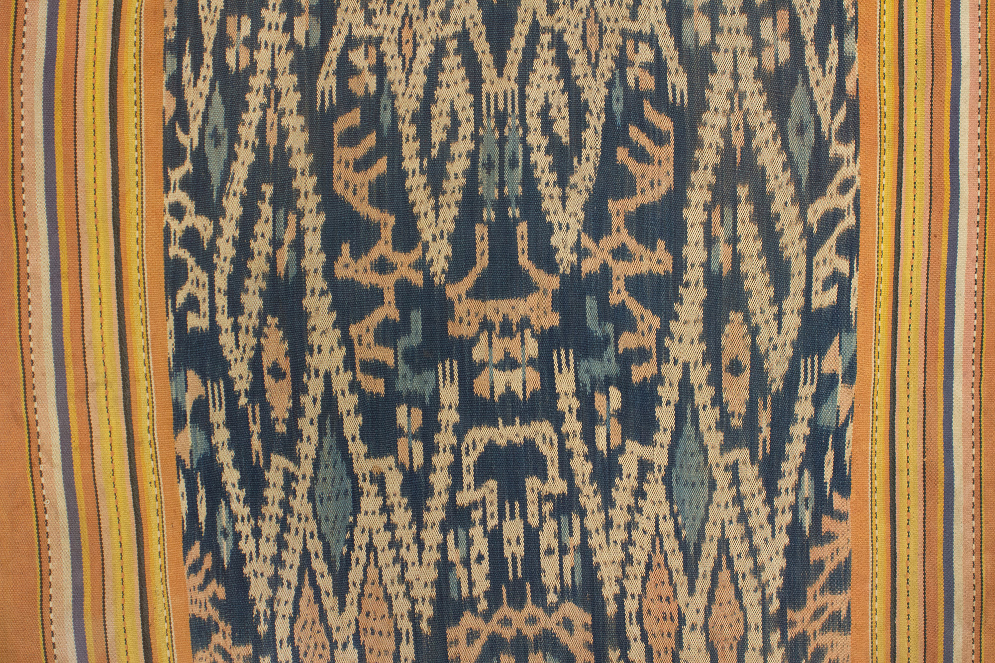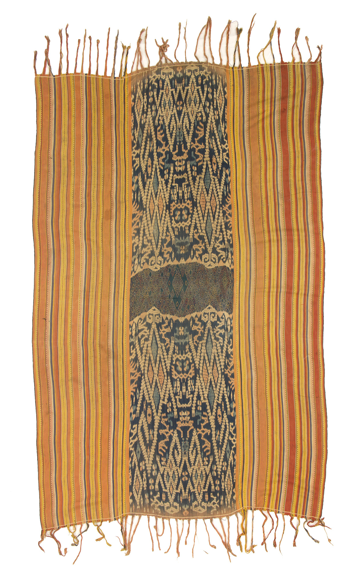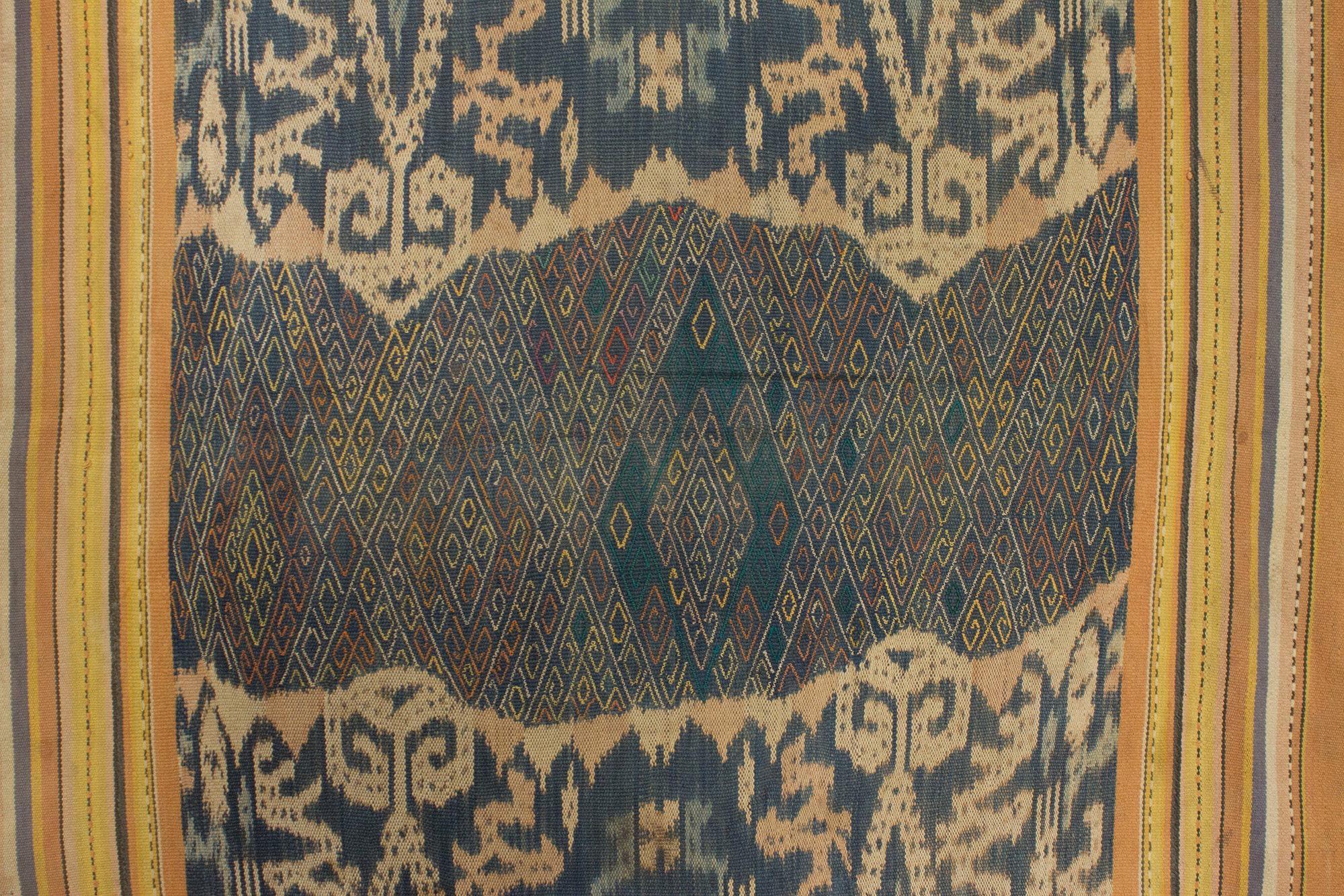 Timor Ikat fabric. Indonesia. 20th century. Excellent state of conservation. Original headers and edges, without restorations. 115x180cm approx. Tessuto Ikat Timor. Indonesia. XX secolo. Eccellente stato di conservazione. Testate e bordi originali, senza restauri. 115x180 cm ca.